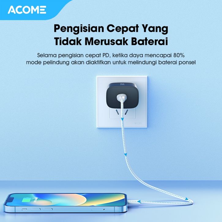 Bundling Hemat Charger Iphone 20W PD USB-C (AC07) + Kabel Data Type-C / Lightning Fast Charging (AD-C Series) Original