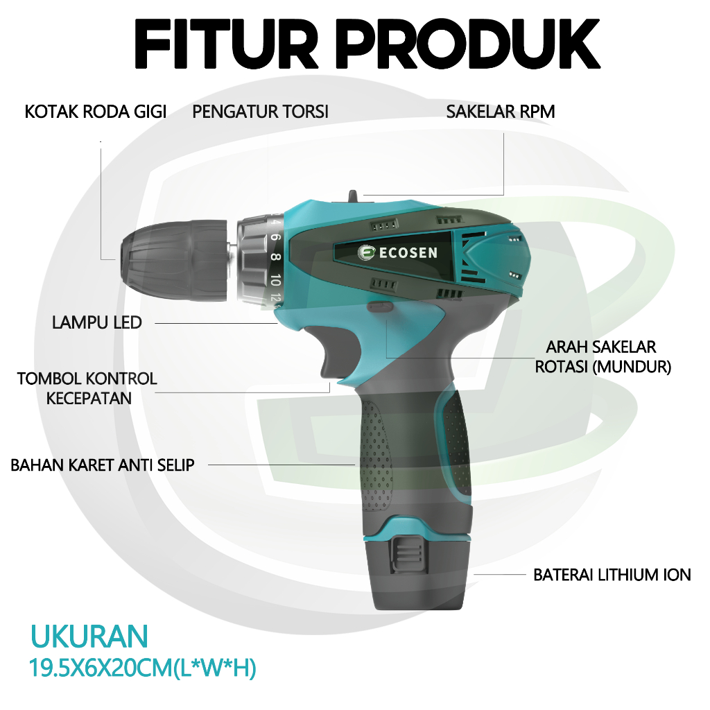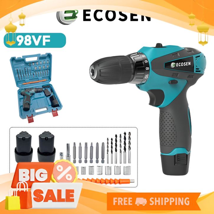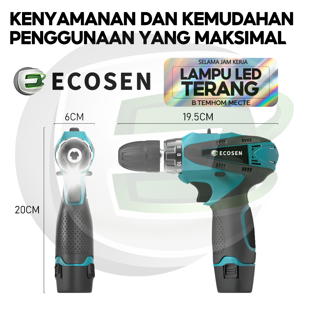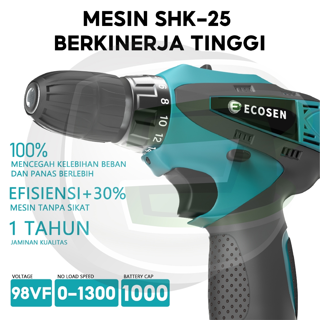 [Mall] ECOSEN 98V Mesin Bor Tangan Bor listrik Bor cas Cordless Drill Battery