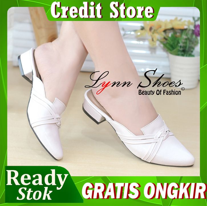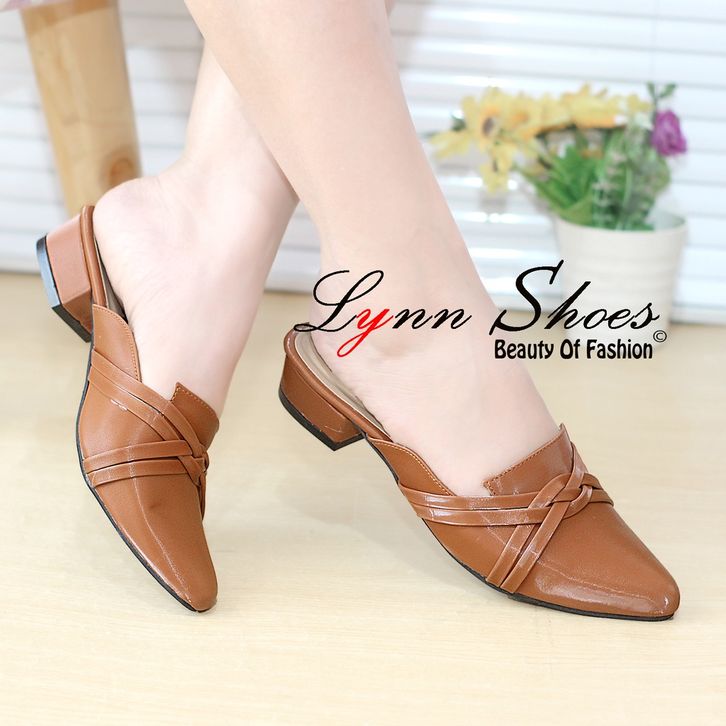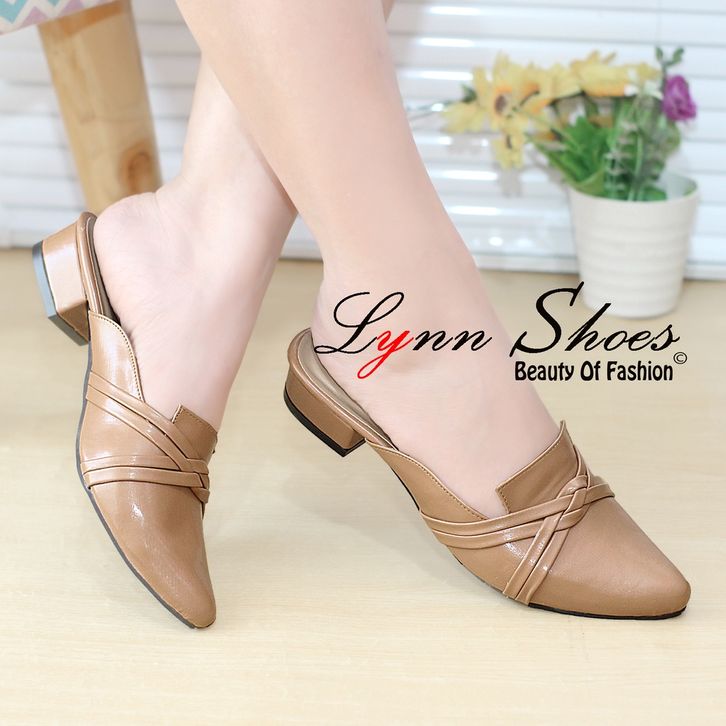 CREDIT STORE SEPATU SANDAL SLOP WANITA MURAH Lynn Sendal Mules Selop Wanita Hak 2,5cm S12U - Coklat / Coklat Muda / Crea