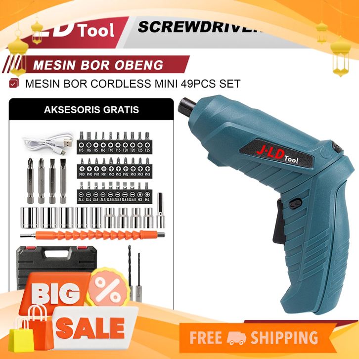 [Mall] JLD Cordless Screwdriver 4.2V Baterai 49pcs fullset koper Bor Obeng Mini