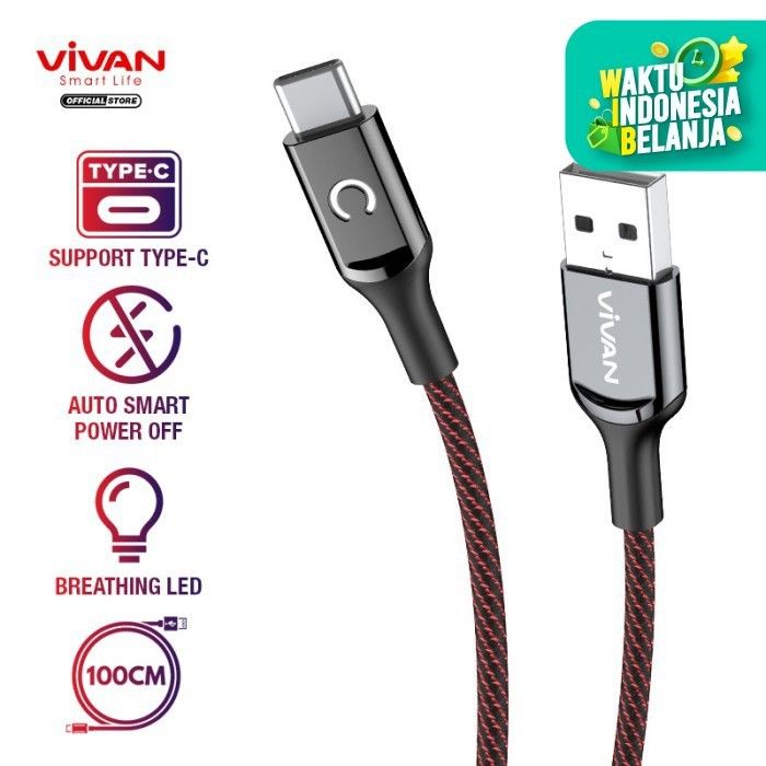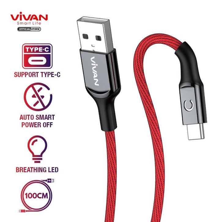 Kabel Data Vivan KABEL DATA USB Type - C TYPE C VIVAN VZC100 VZC100S 3A LED Auto Smart Power Off - Garansi VIVAN Offic