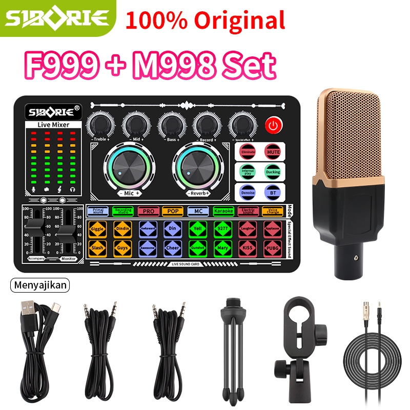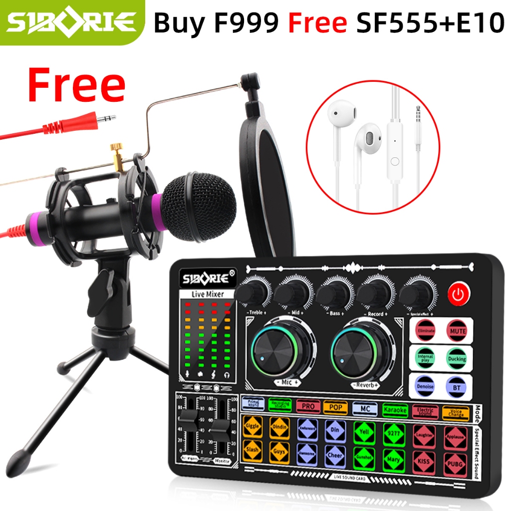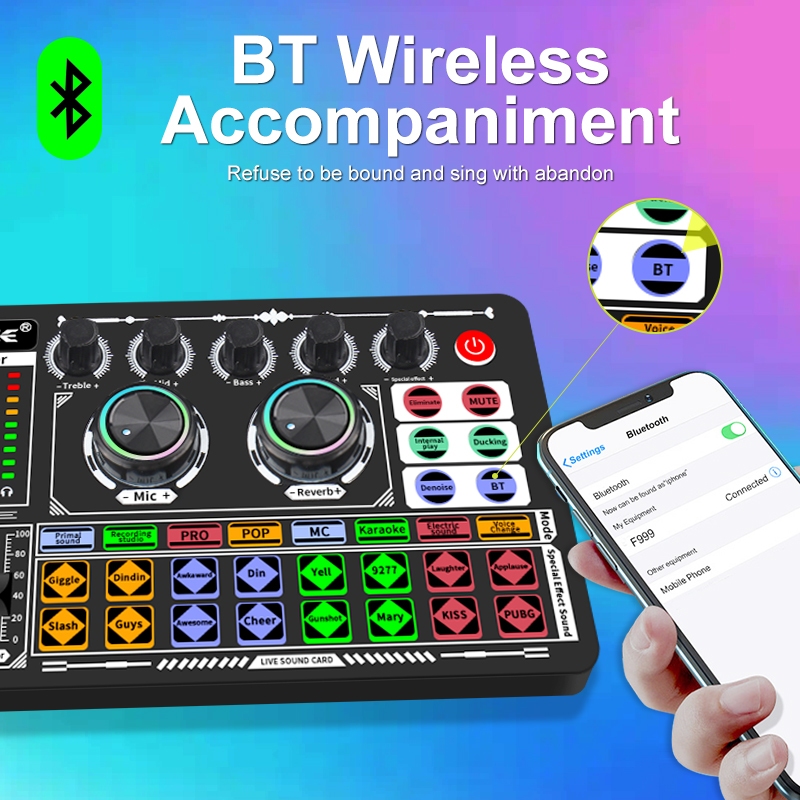 Soundcard F999 Audio USB External Sound Card mic Mixer Bluetooth Phone Pc Fullset