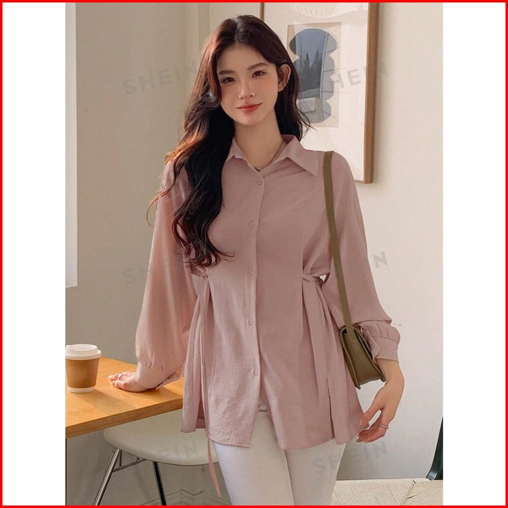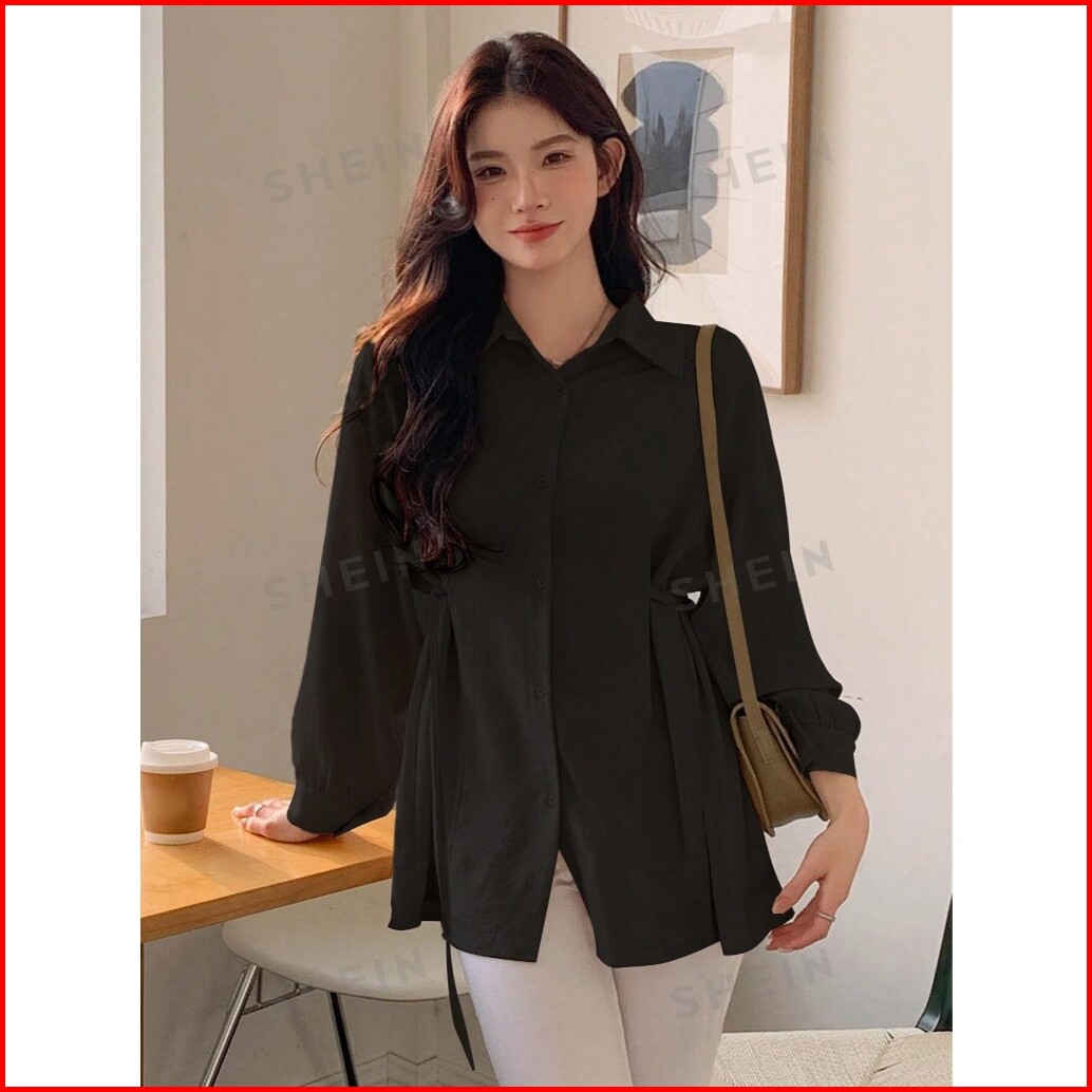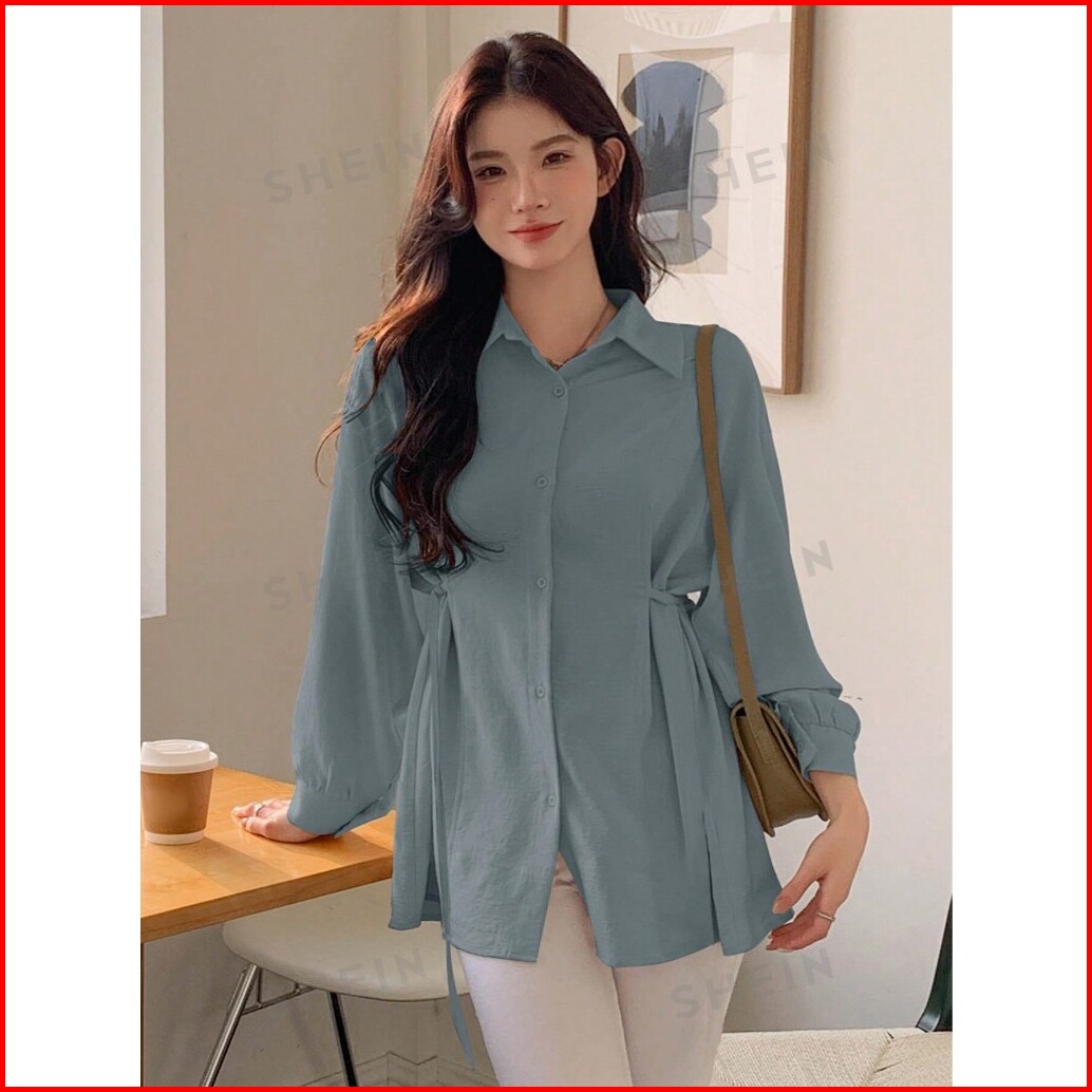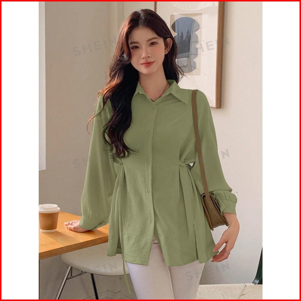 Kemeja Sakura Atasan Wanita Polos Oversize Bahan Kringkel