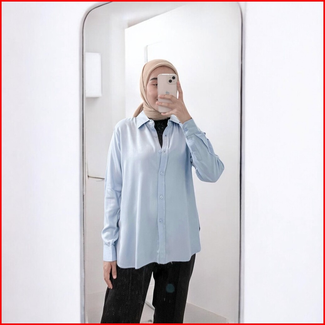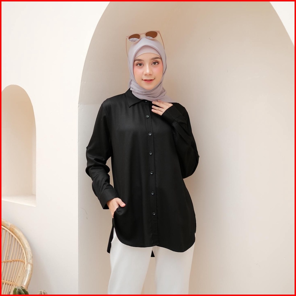 Anyostore Ab07 Kemeja Wanita Polos Bahan Twill Rayon Hitam Putih Bersih
