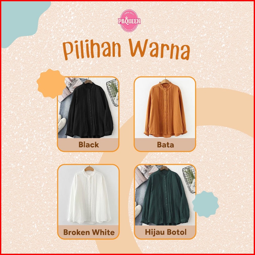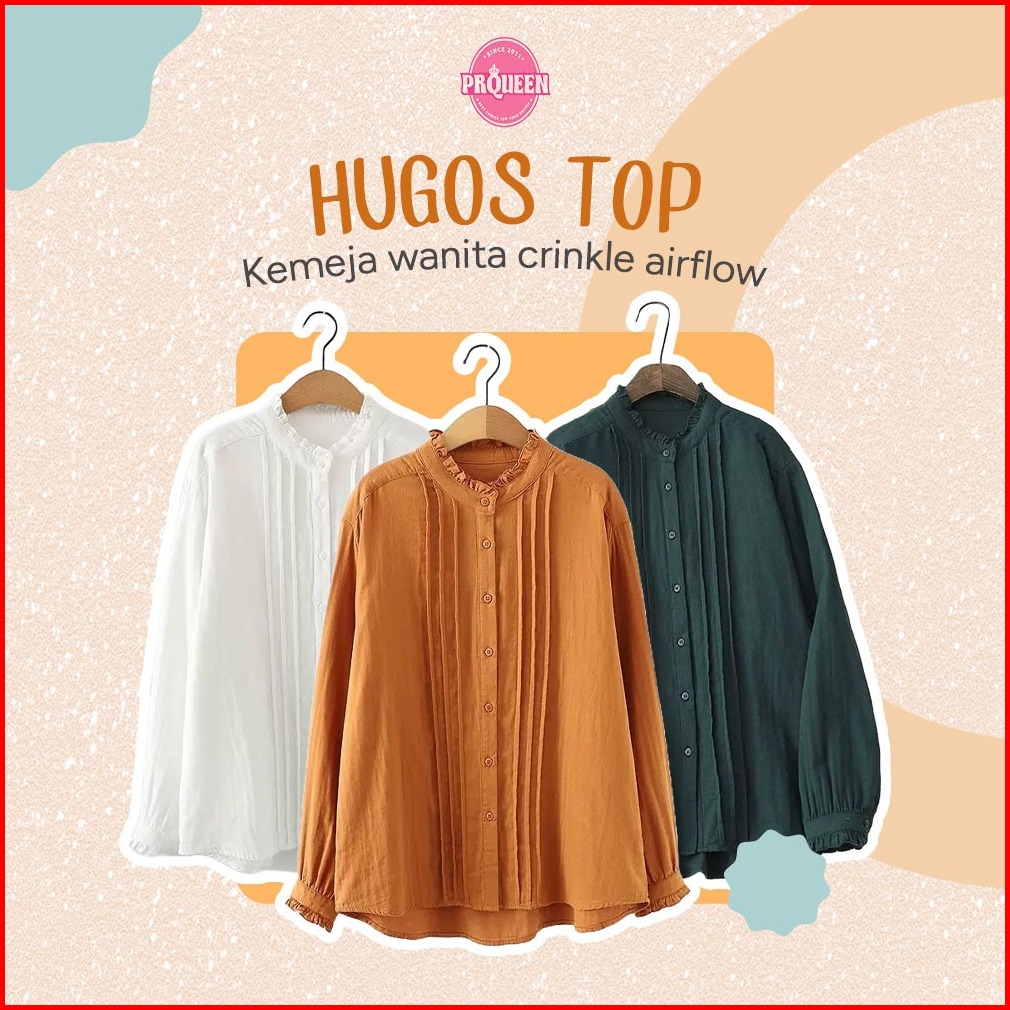 Prqueen Fashion Hugos Top Kemeja Wanita Crinkle Airflow Baju Atasan Wanita Casual Korean Style