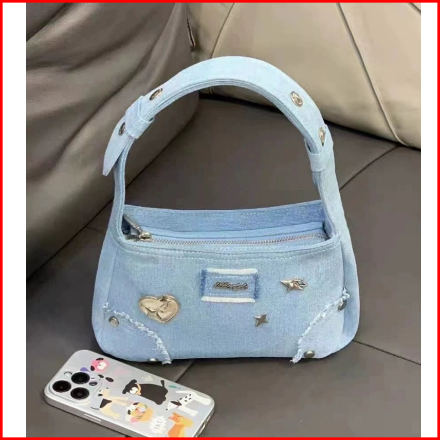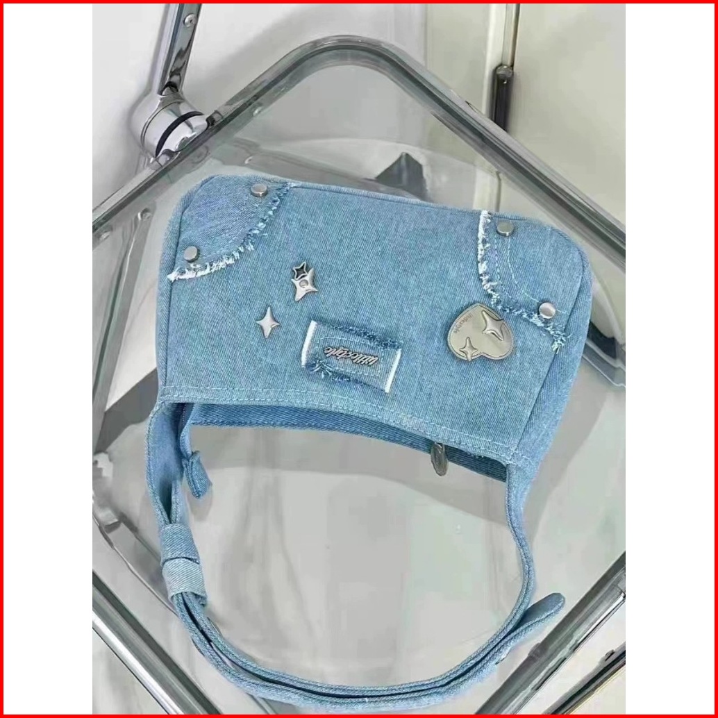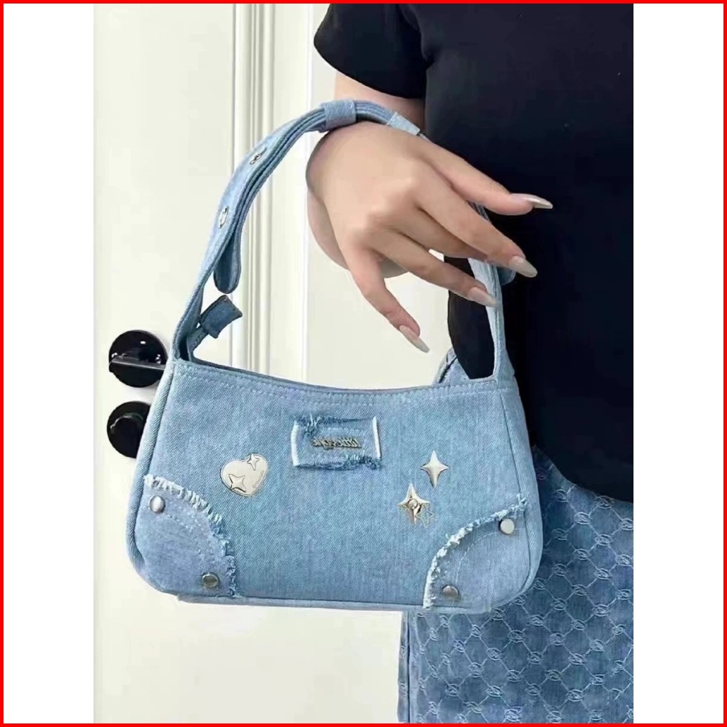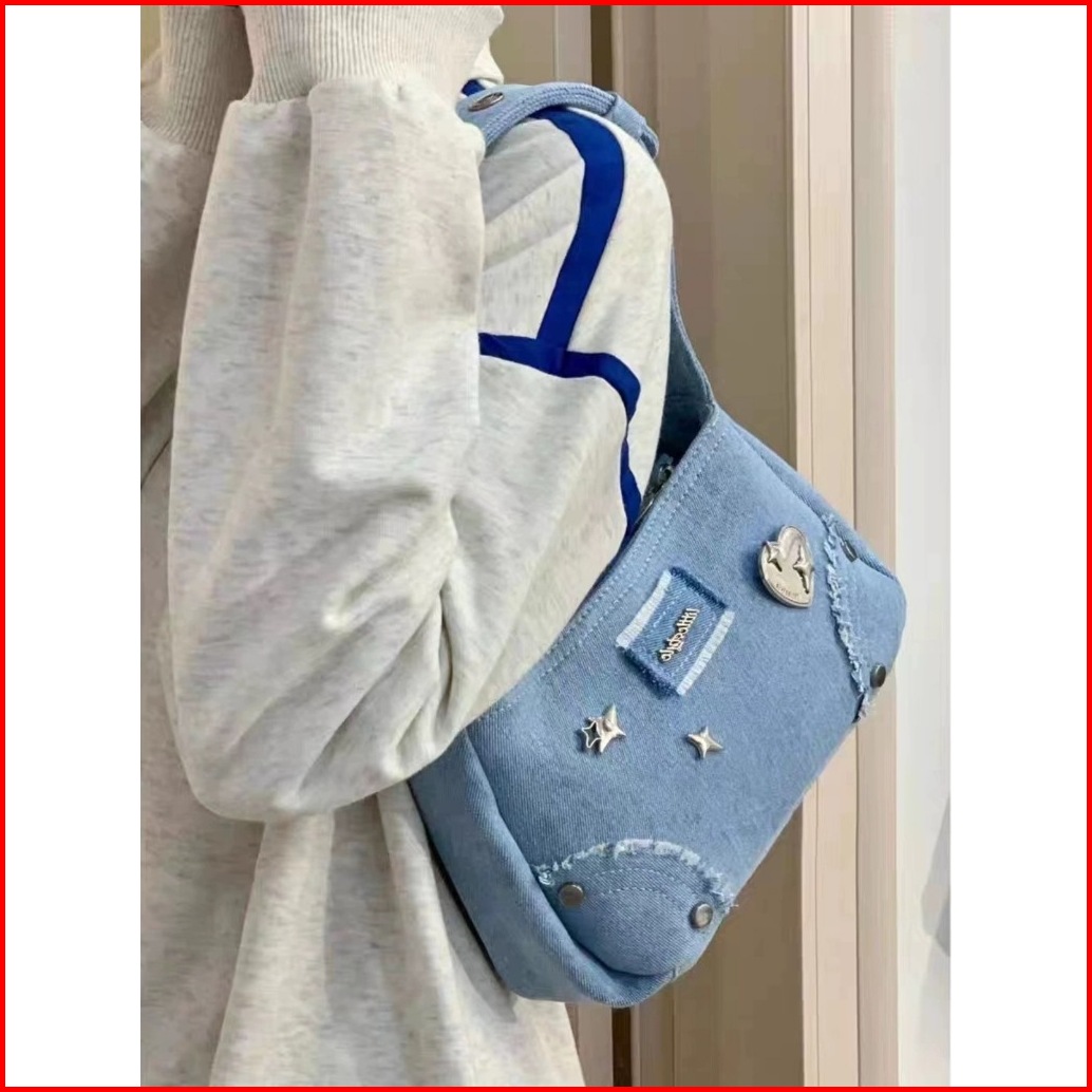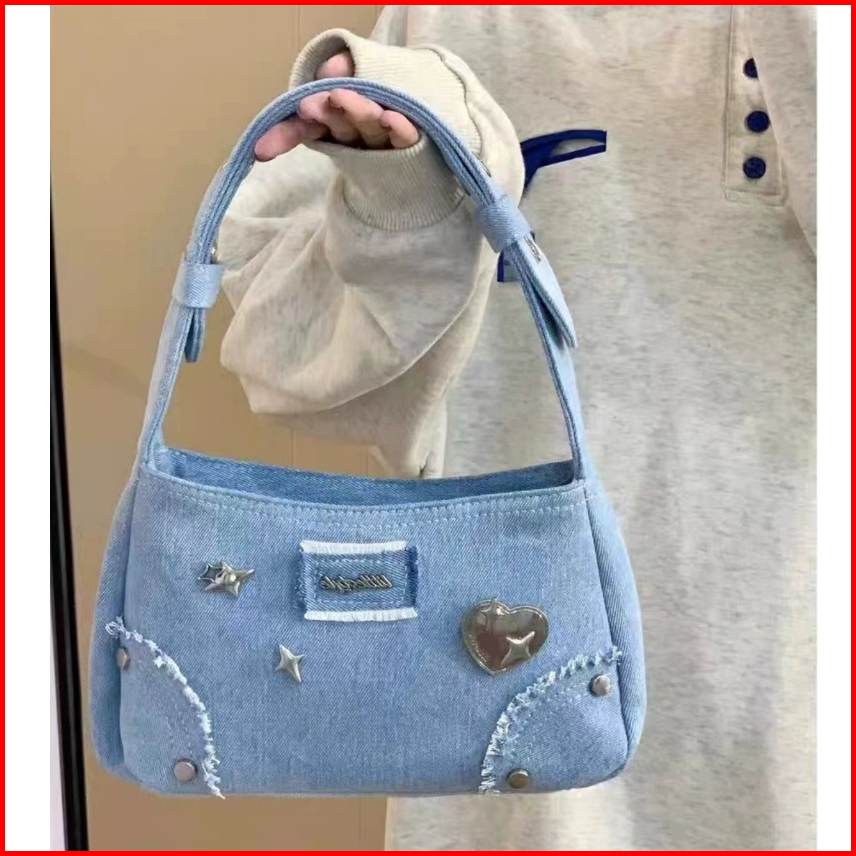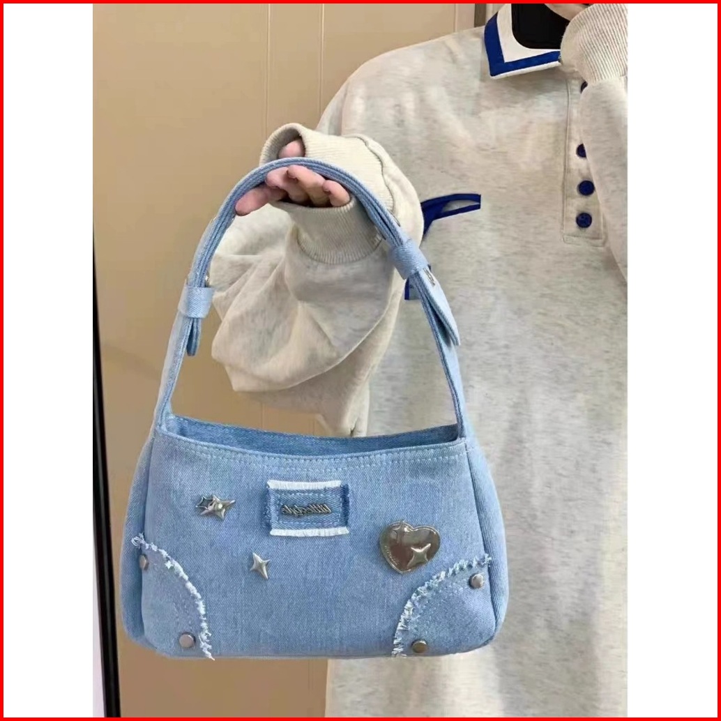 Gt 067 Tas Bahu Wanita Denim Tas Jinjing Cewek Amond Bintang Hati Shoulder Bag