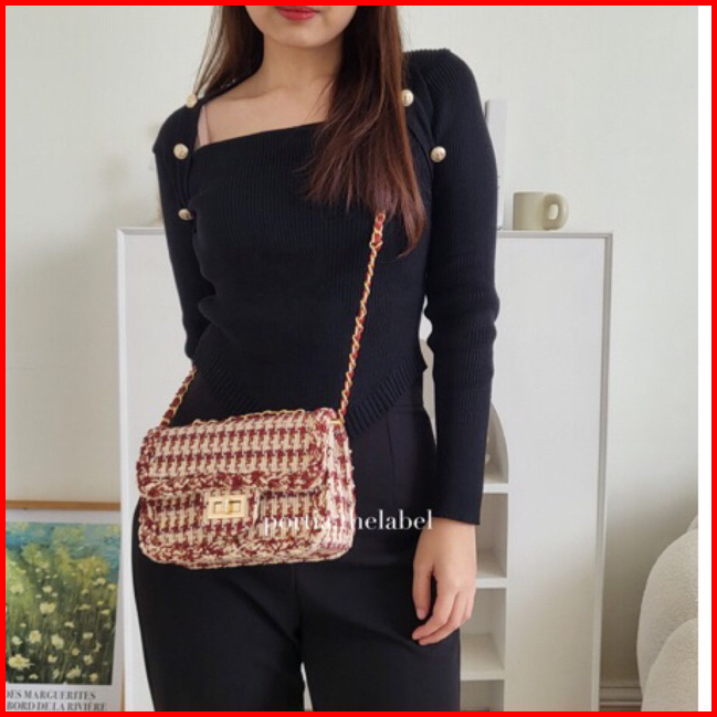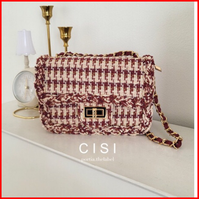 Cisi Bag By Portia - Tas Tweed Slingbag Shoulder Bag Tas Bahu Wanita Tas Wanita Elegan Tas Imlek Cny
