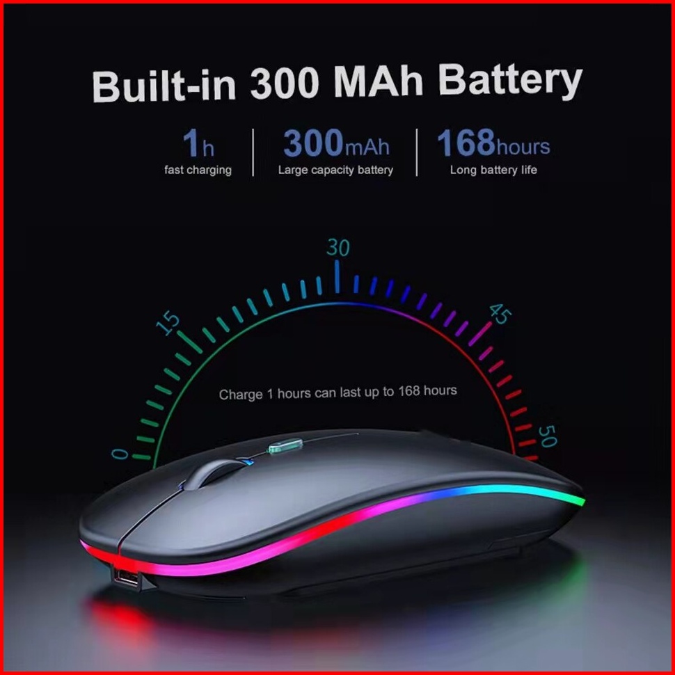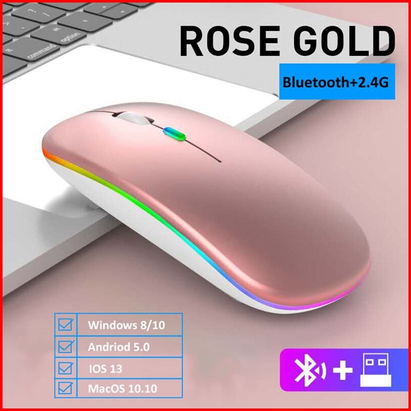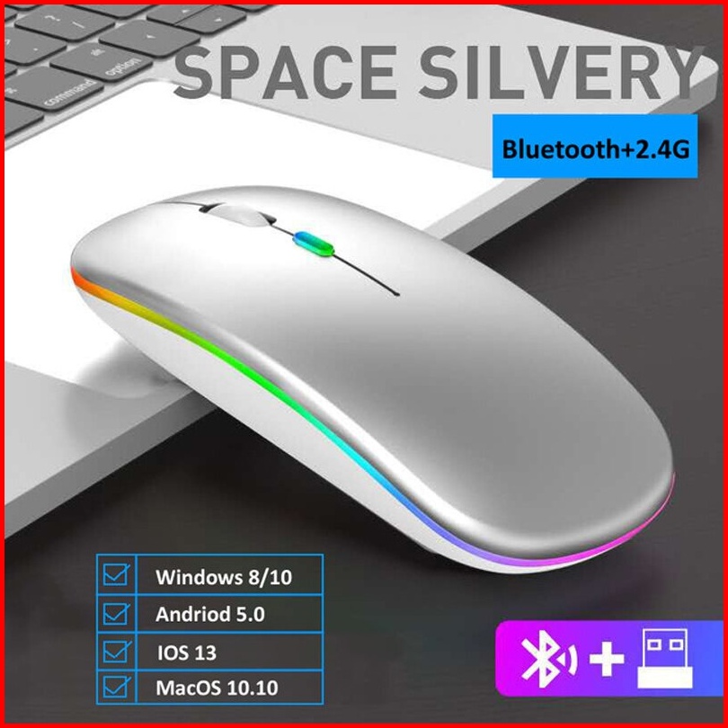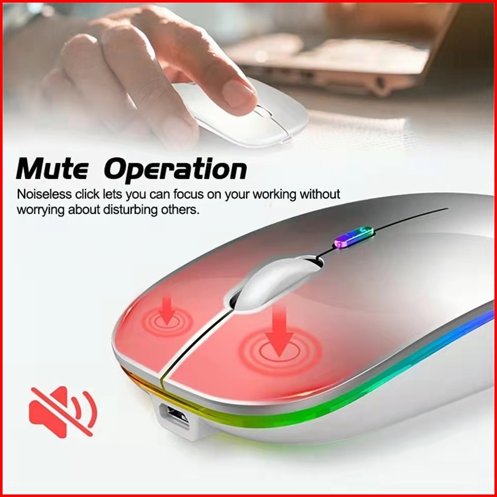 Mouse Wireless Rechargeable Silent Click Slim 2.4g Bluetooth Dongle 1600 Dpi Rgb Led Support Android Ios Laptop Multifun