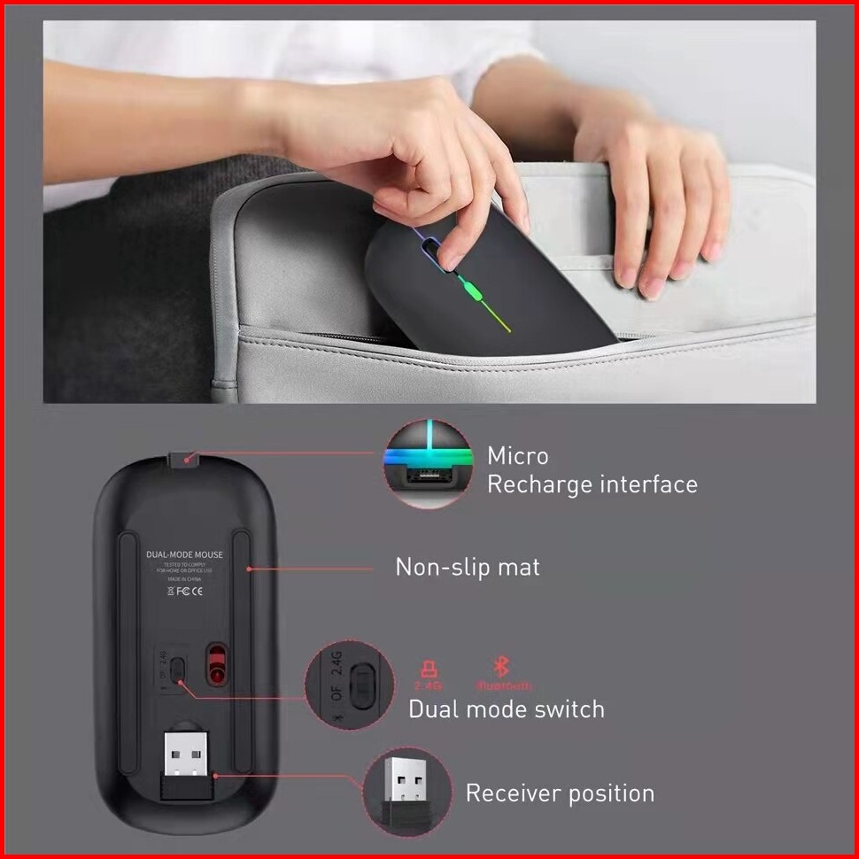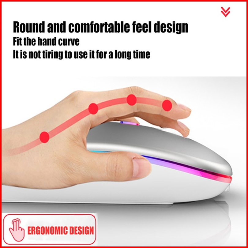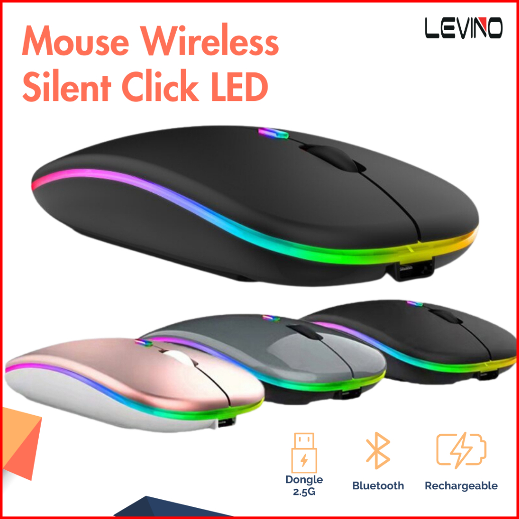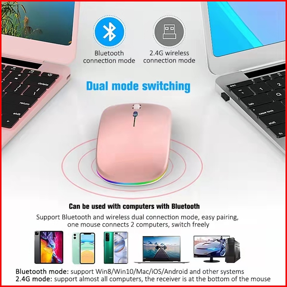 Mouse Wireless Rechargeable Silent Click Slim 2.4g Bluetooth Dongle 1600 Dpi Rgb Led Support Android Ios Laptop Multifun