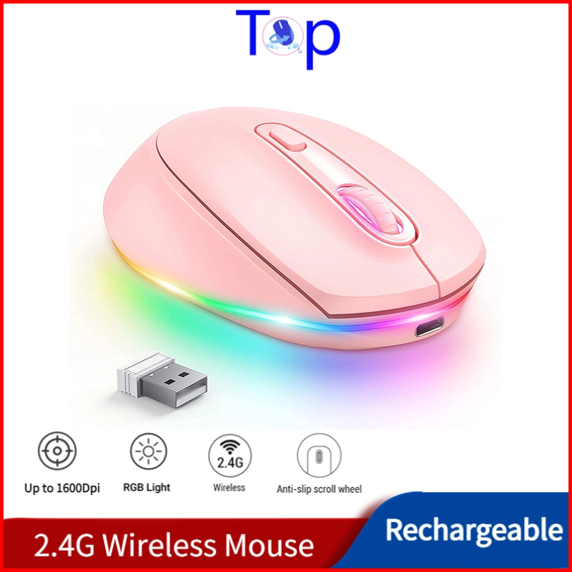 Mouse Wireless Rechargeable Silent Click 2.4g1600 Dpi Rgb Led Mouse Gaming Mouse Cute Mouse Rechargeable Laptop