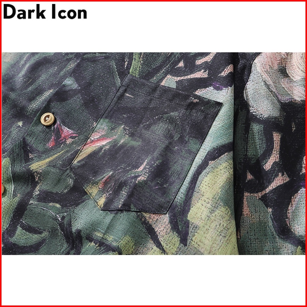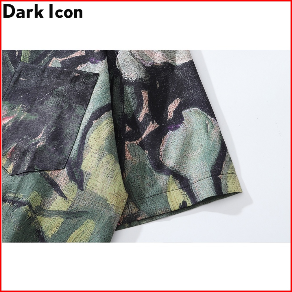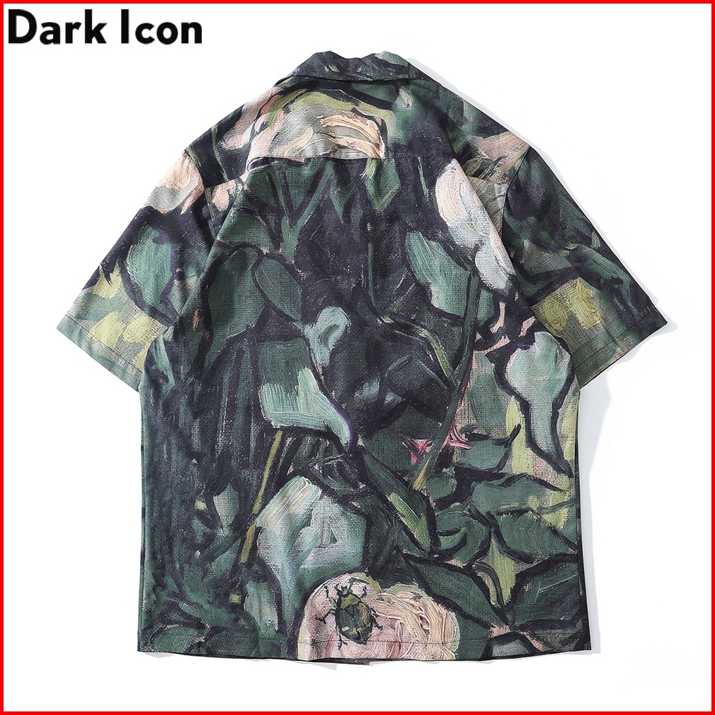 Dark Icon Lukisan Abstrak Painting Hawaiian Shirts Men Cuba Collar Vintage Men S Shirt