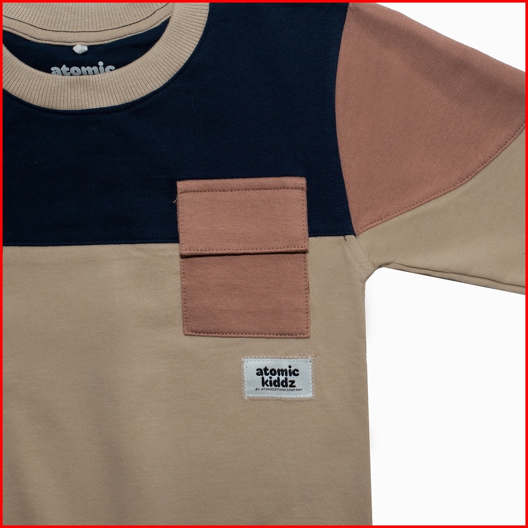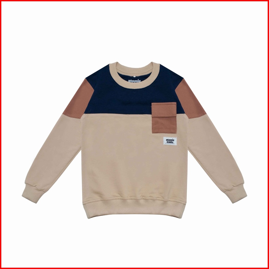 Atomic Kiddz Sweater Crewneck Bersaku Untuk Anak 1 - 12 Th Laki-laki Perempuan - Amaze Navy Cream Coklat