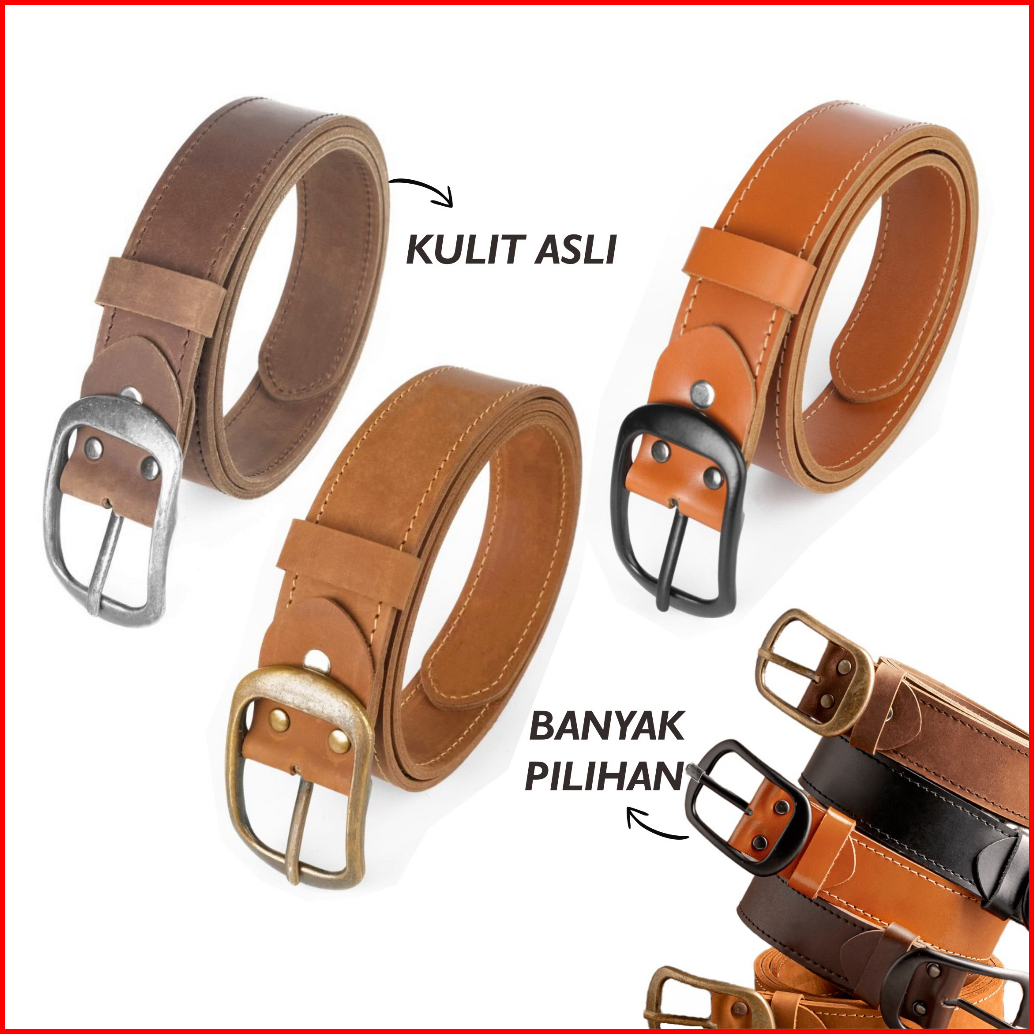 Ikat Pinggang Gesper Pria Sabuk Kulit Asli 4 Cm Buckle Oval