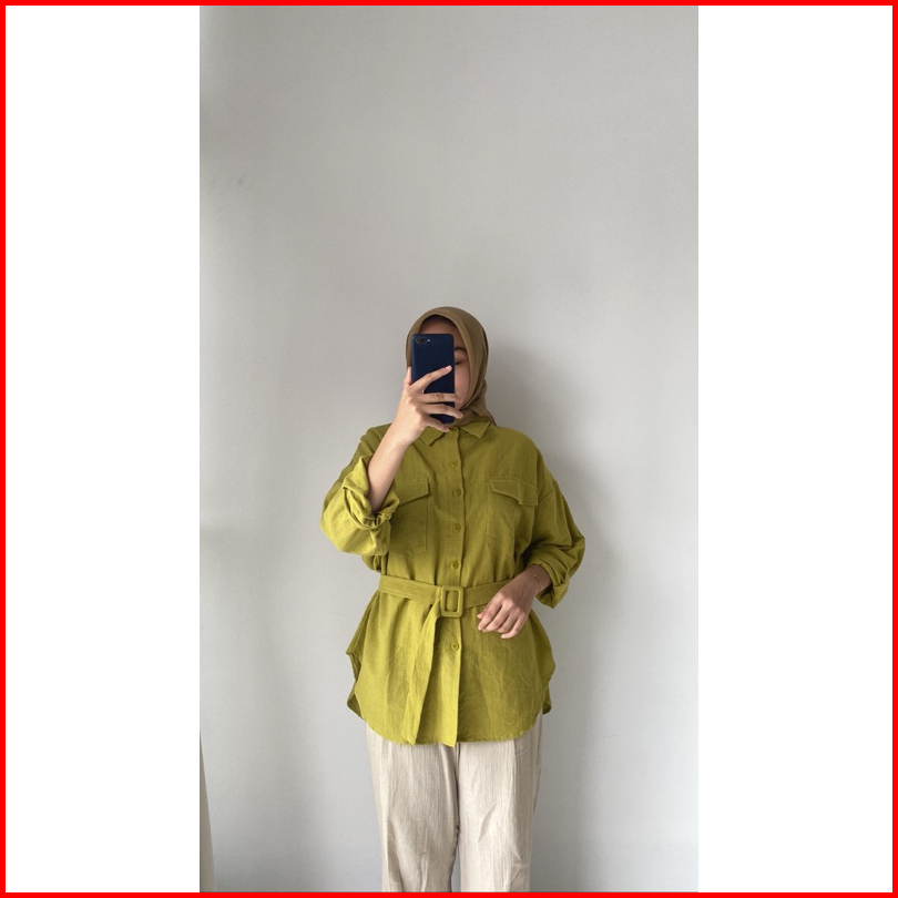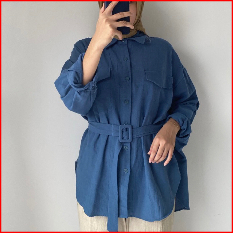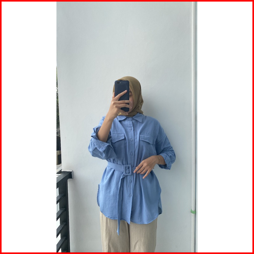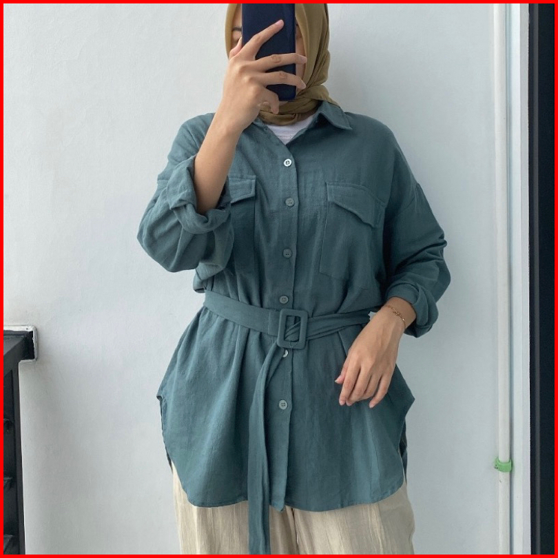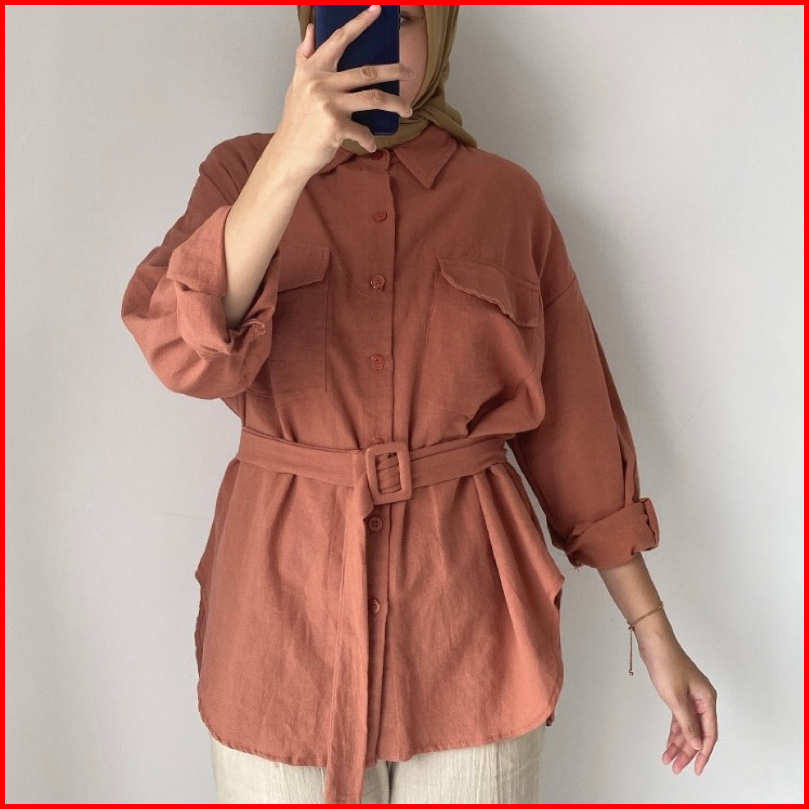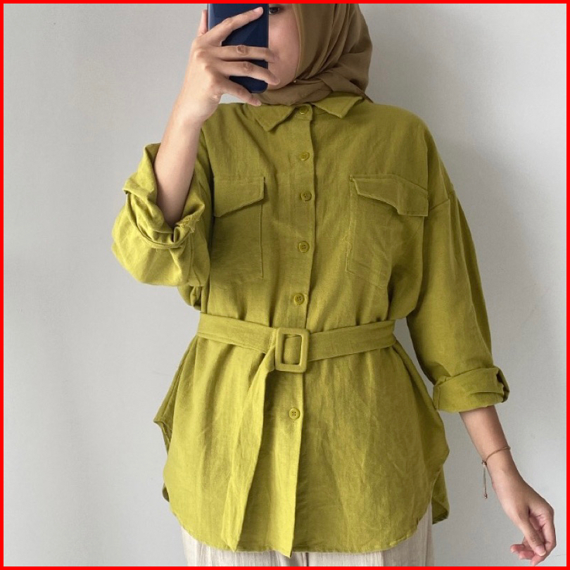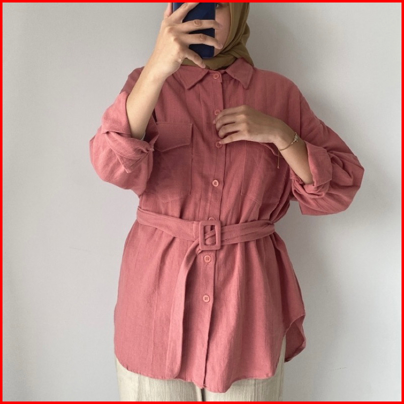 Kemeja Linen Belt - Atasan Wanita Hijab