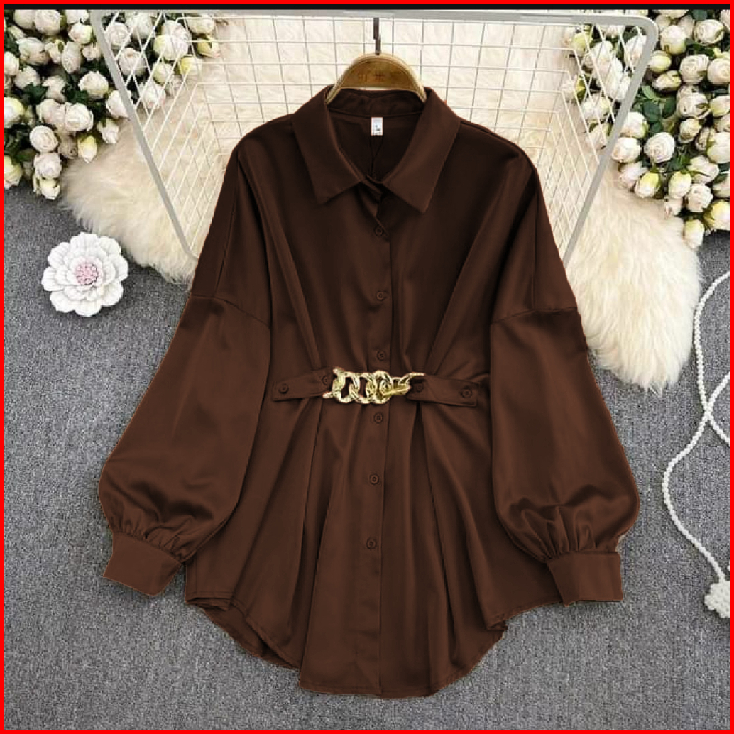 Safaraz Kemeja Wanita Polos Motif Rantai Lengan Balon Korean Style Melda Oversize Jumbo M L Xl Xxl