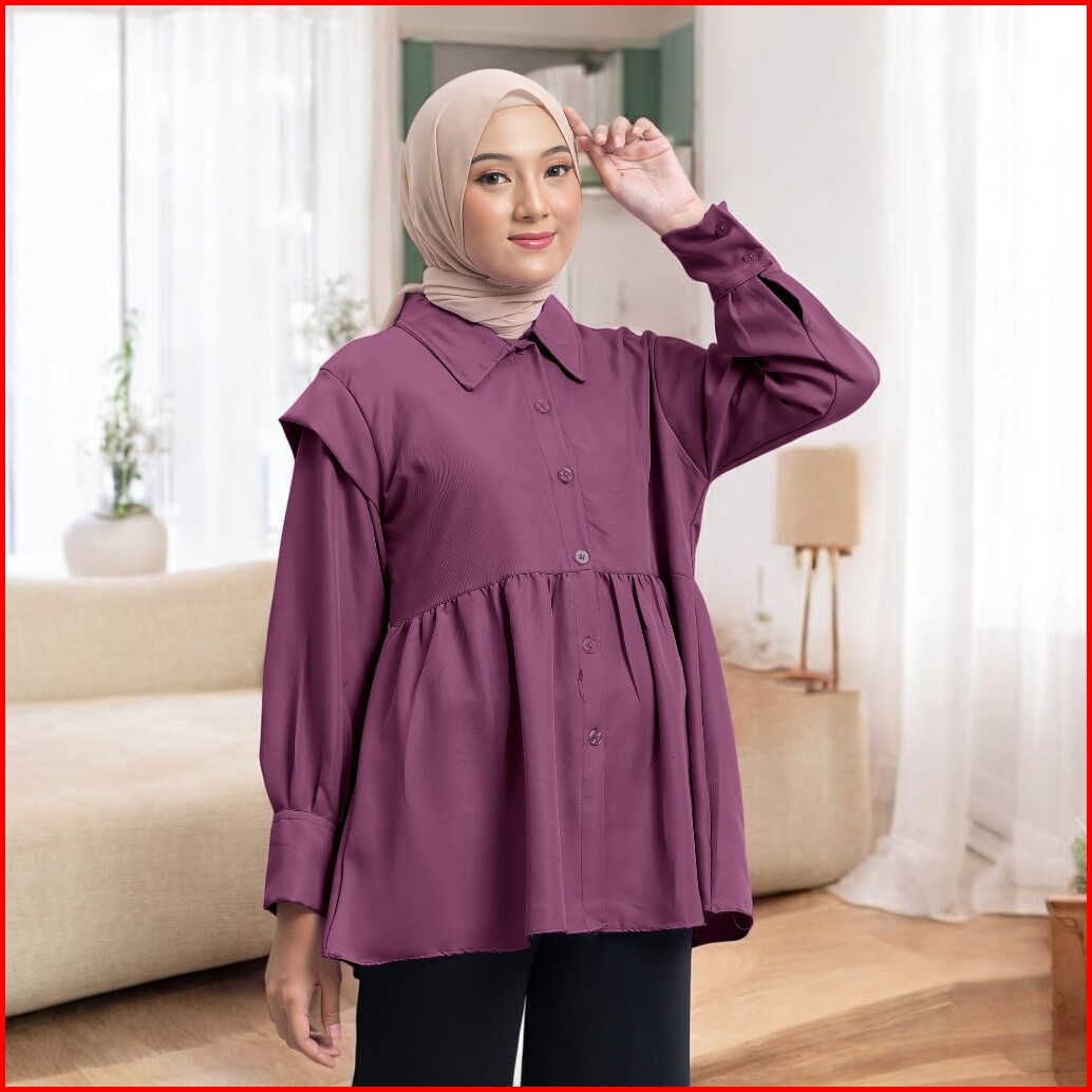 Amie Shop Keyra Top Atasan Pakaian Wanita 2025 Kemeja Tangan Panjang Ootd Daily Casual