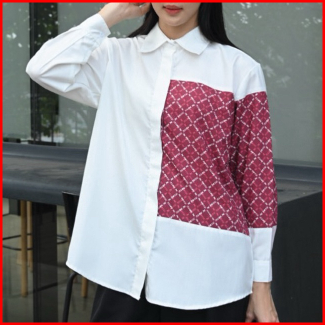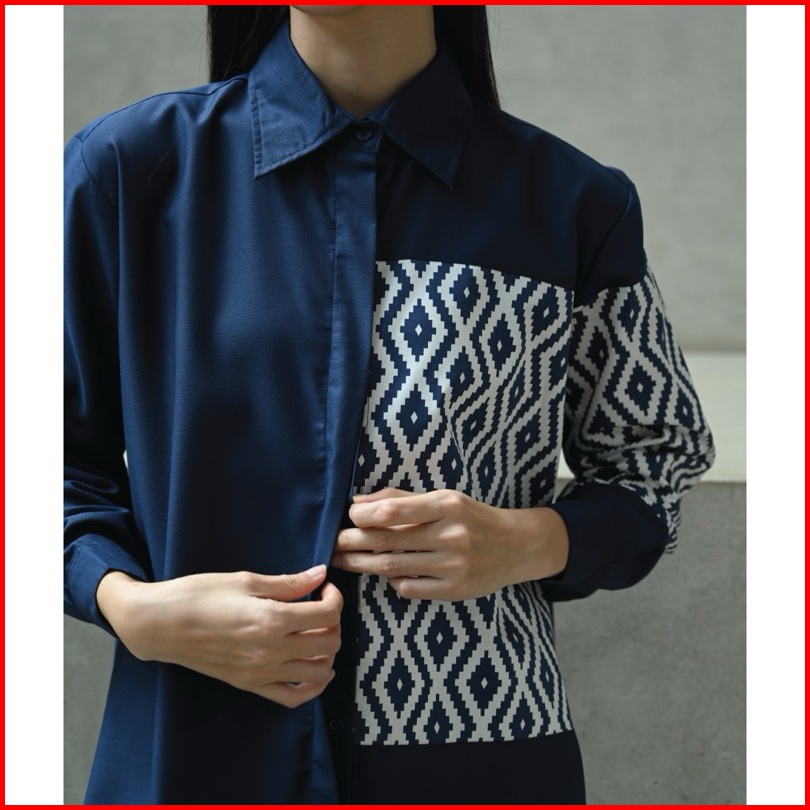 Kemeja Wanita Kemeja Batik Wanita Lengan Panjang Batik Kombinasi - Dawnblissco - Melda Limited Edition