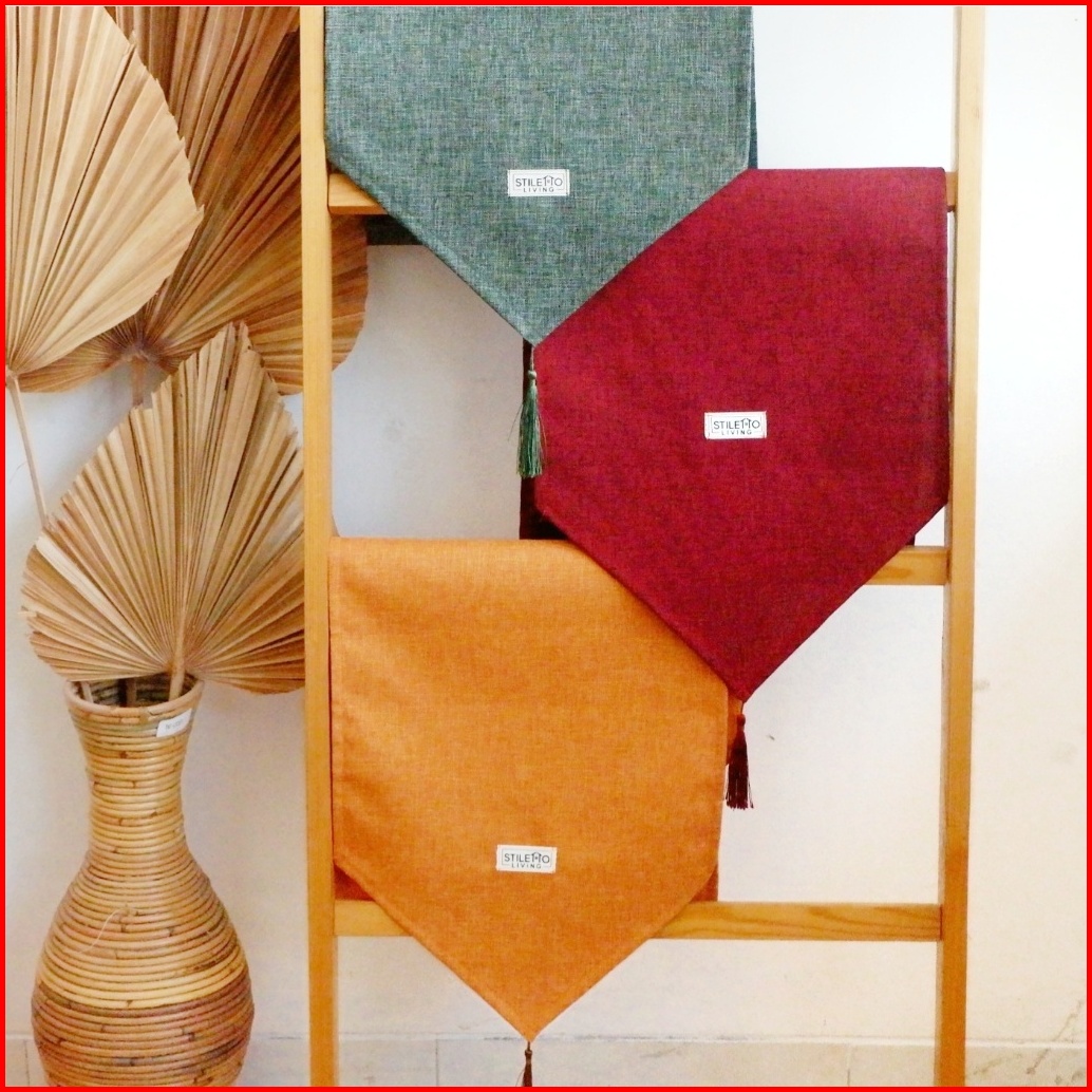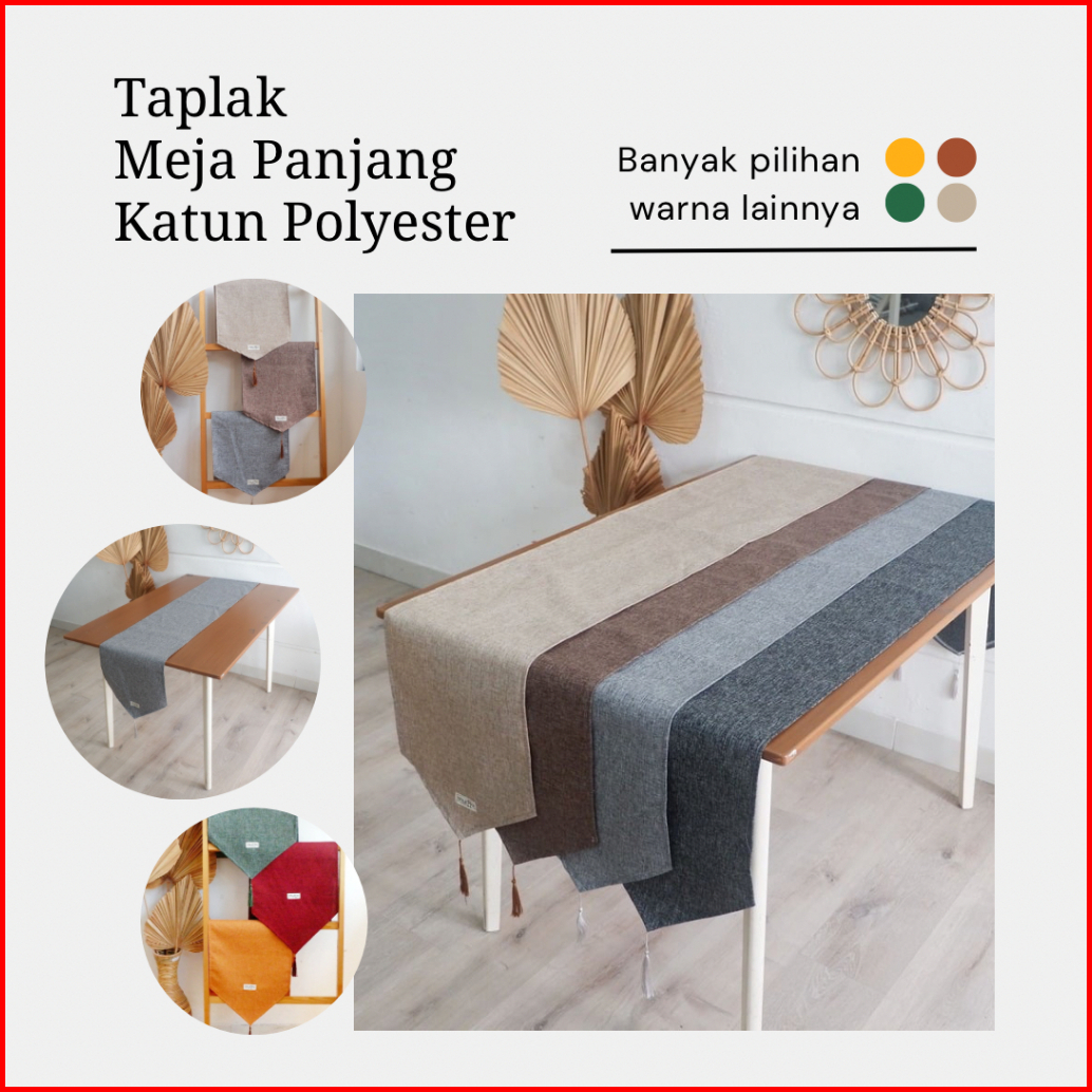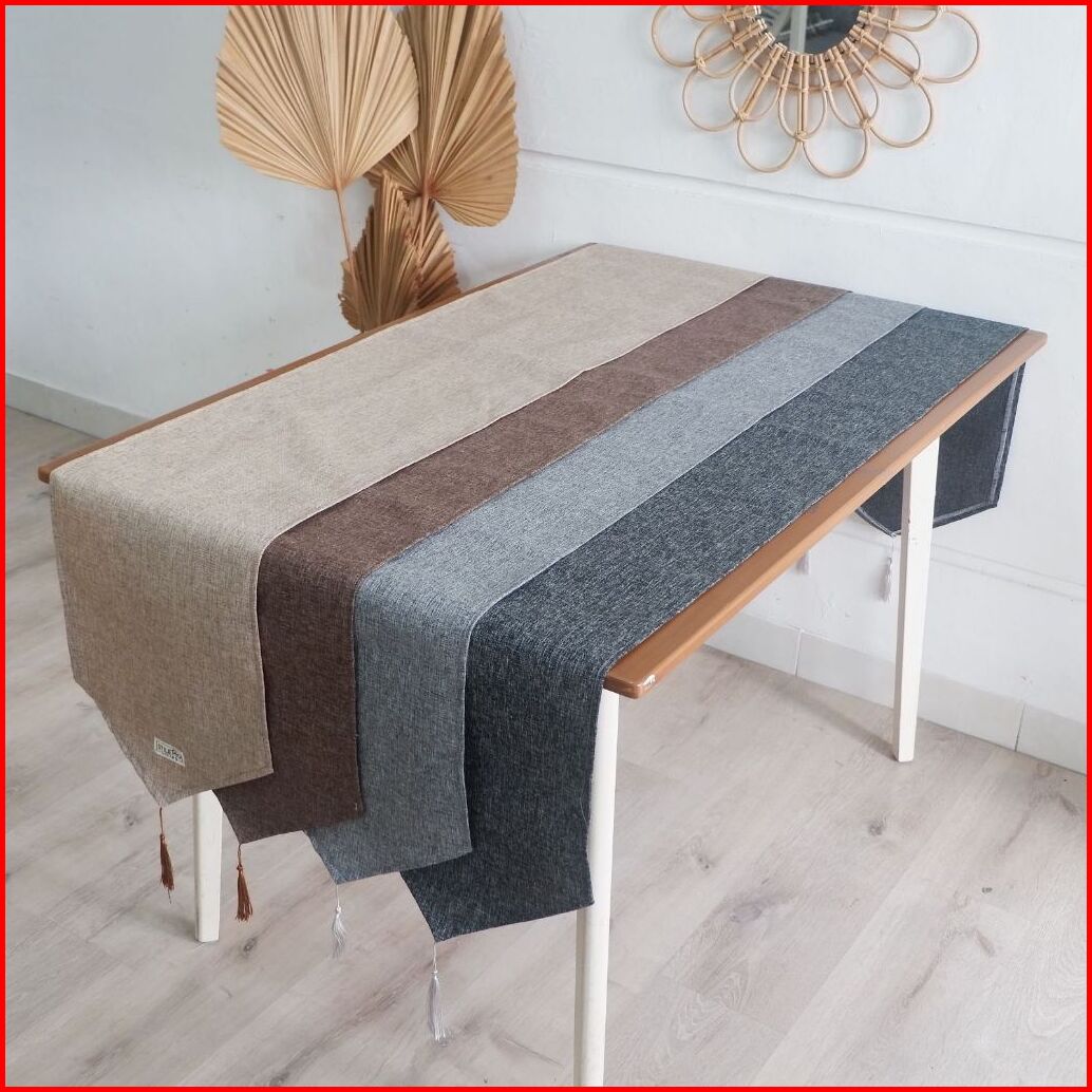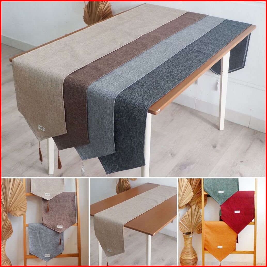 Taplak Meja Katun Polos Kimmy Polyester Tassel Taplak Meja Panjang Table Runner Estetik Minimalis