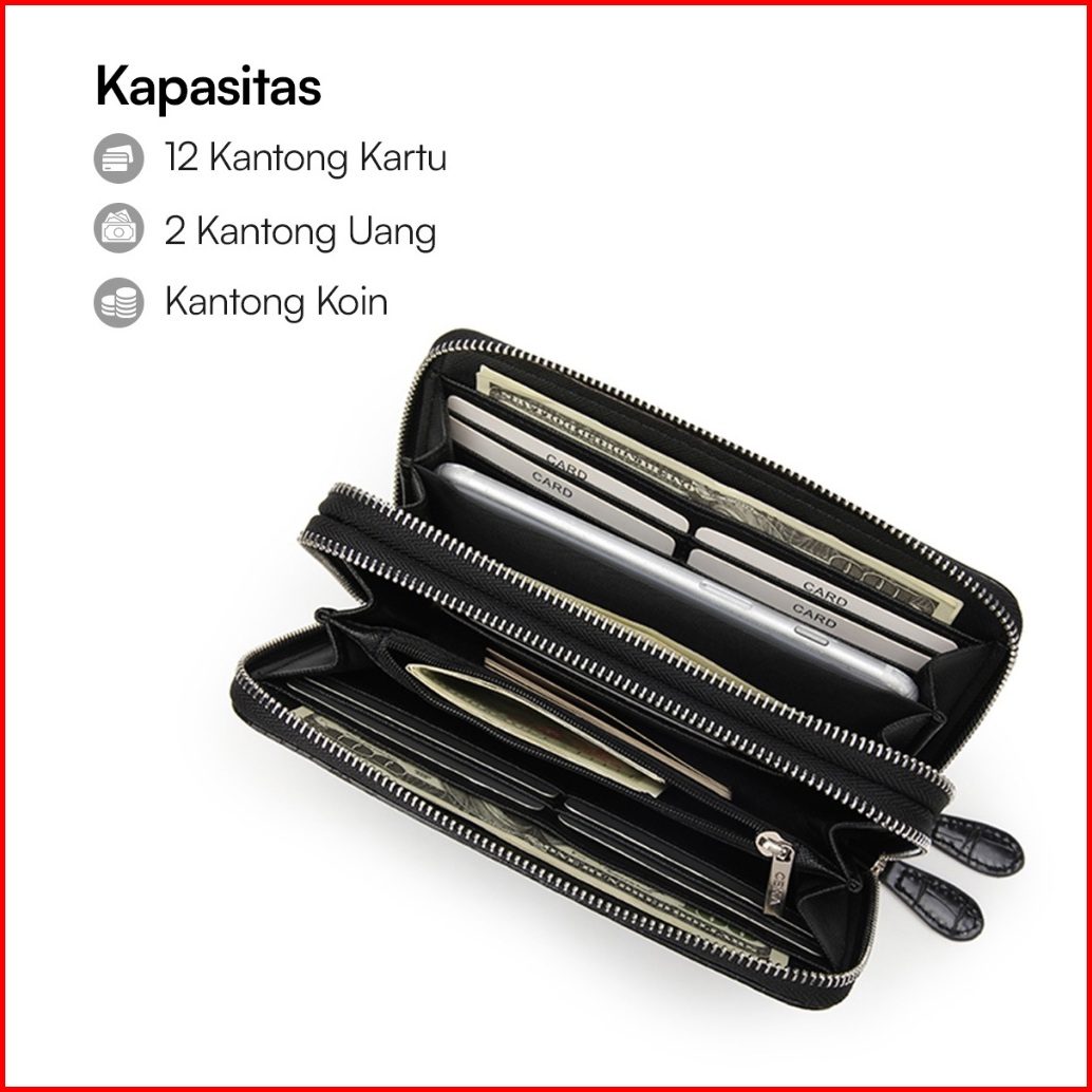 Ceka Dompet Wanita Serbaguna 2 Zip Clutch Wanita Card Holder Dompet Hp Wanita - Nina Long Wallet