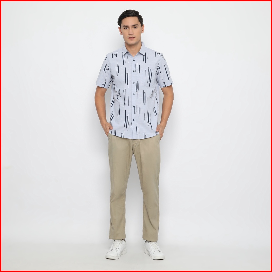 Platini Kemeja Motif Pria Lengan Pendek Biru 132157
