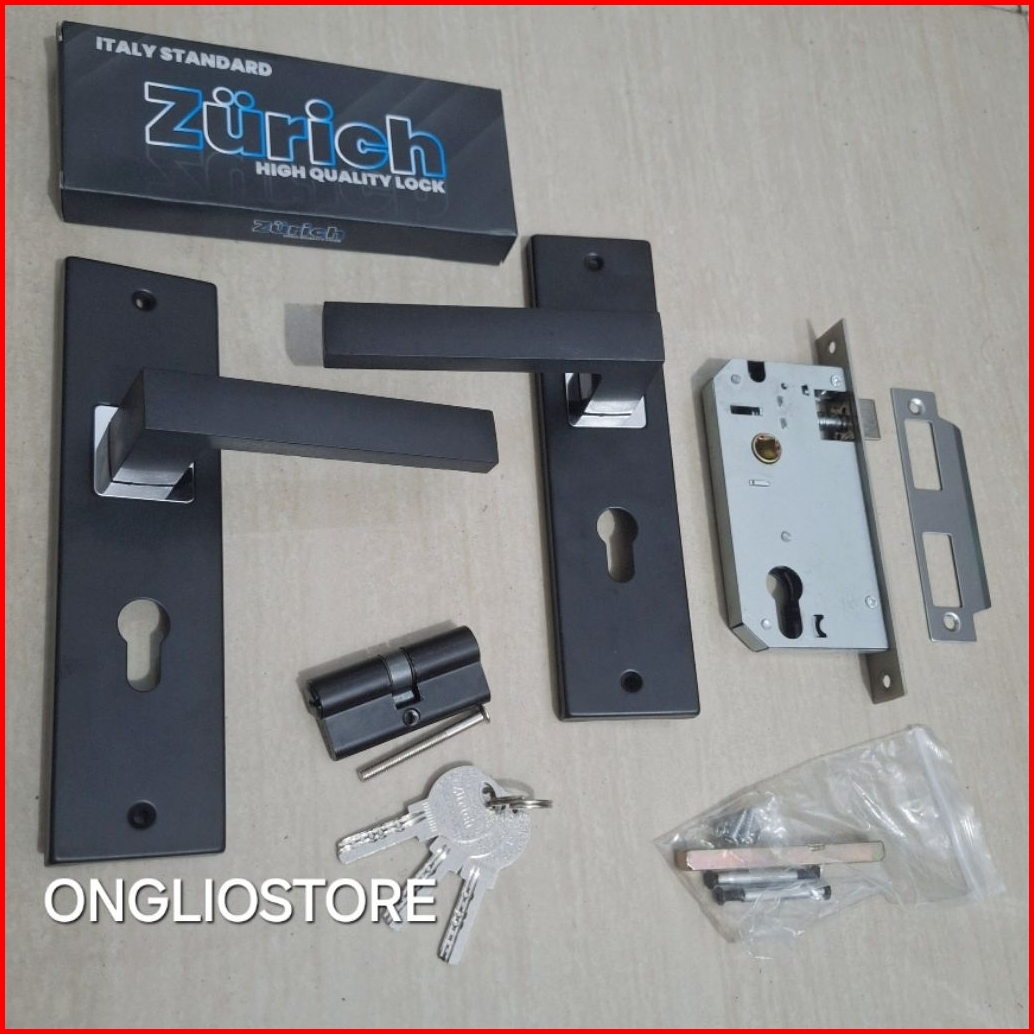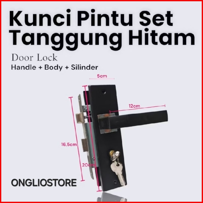 Handle Kunci Pintu Rumah Set Ukuran Medium Tanggung Black Hitam Minimalis