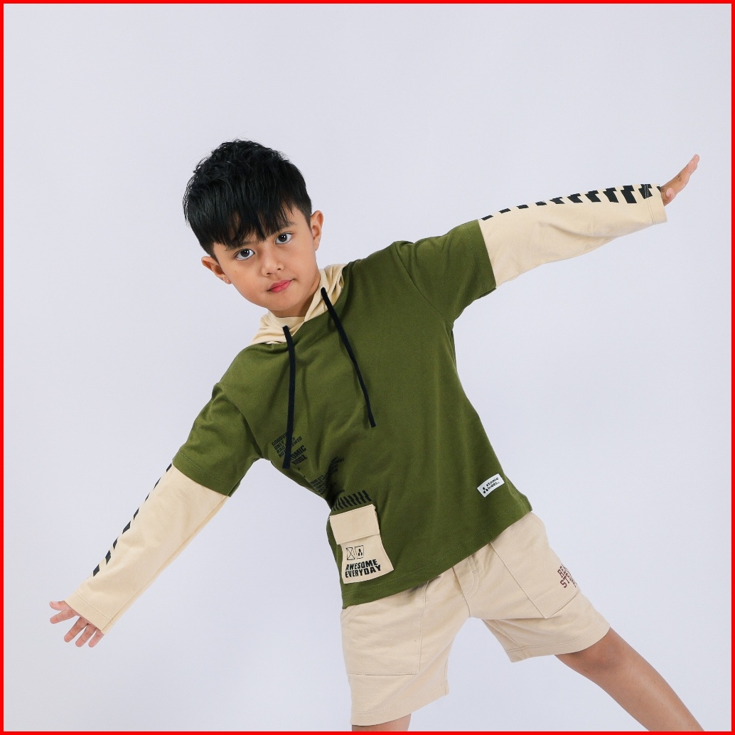 Atomic Kiddz Baju Kaos Hoodie Anak Unisex - Dazel Olive