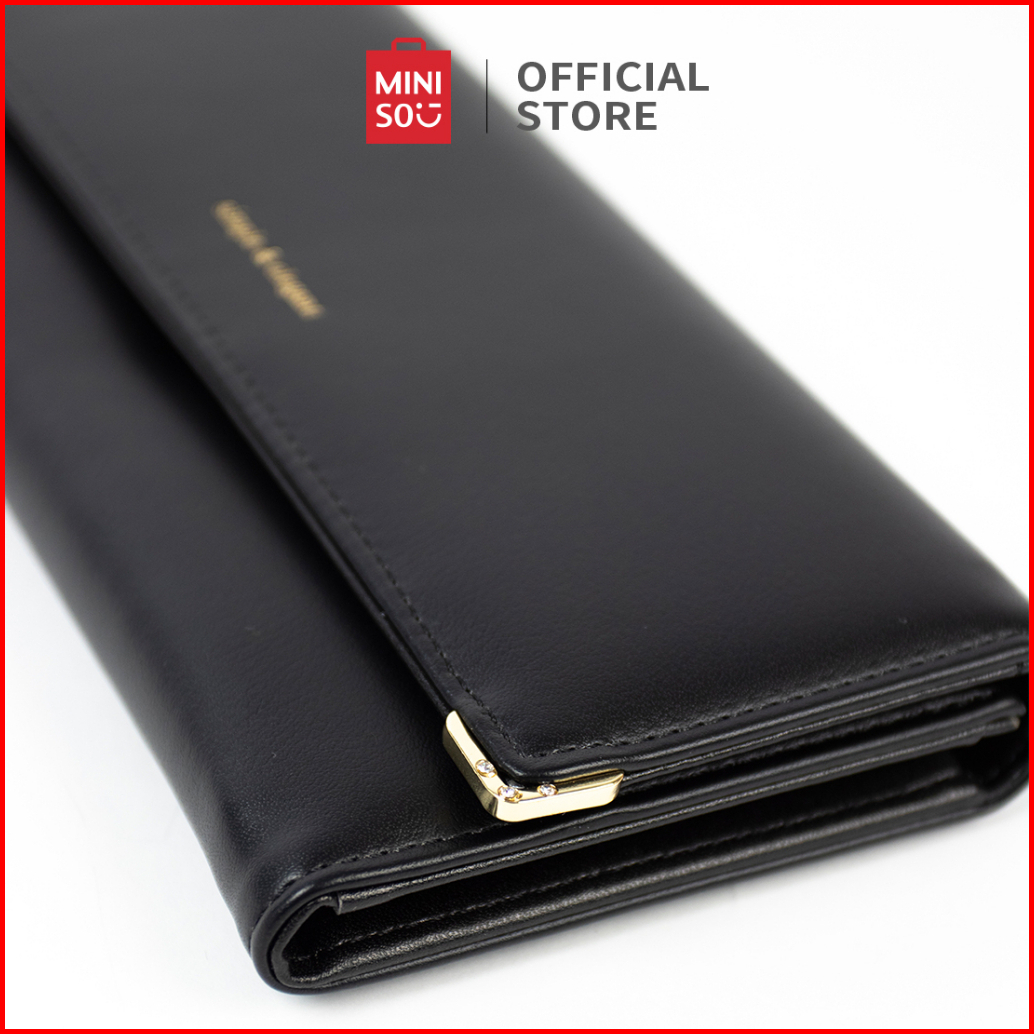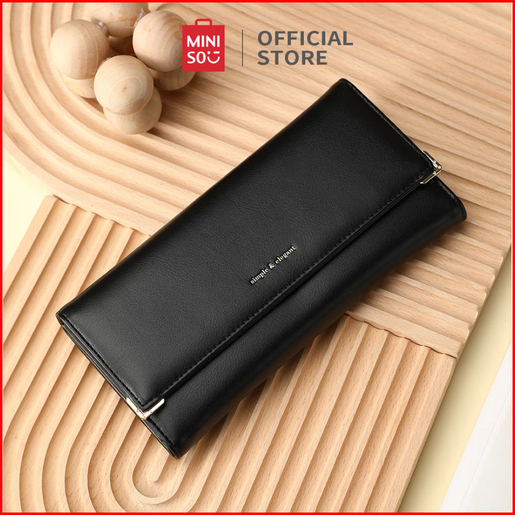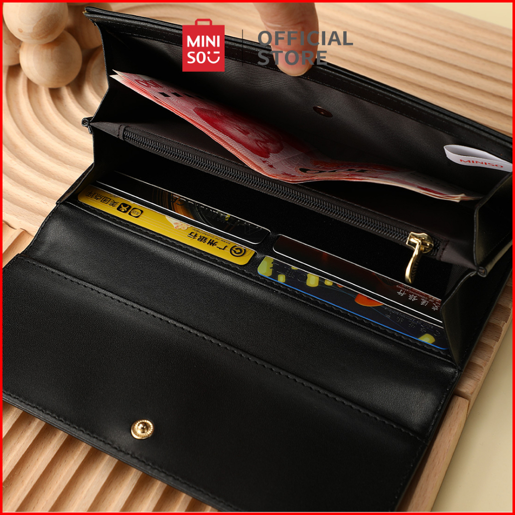Miniso Dompet Wanita Women S Long Bifold Wallet Gesper Magnet Logam Tas Fashion Dompet Klasik Simple