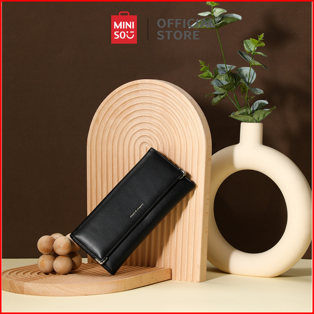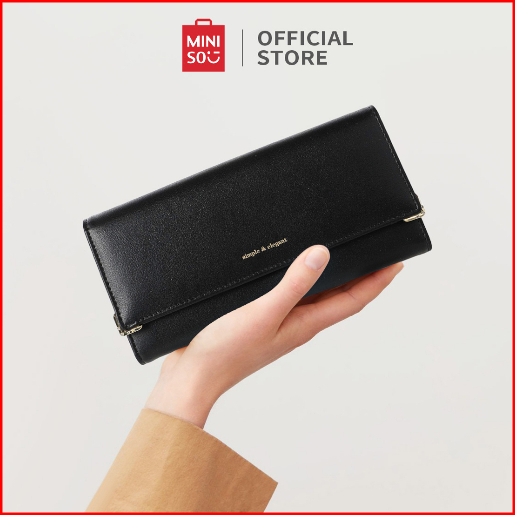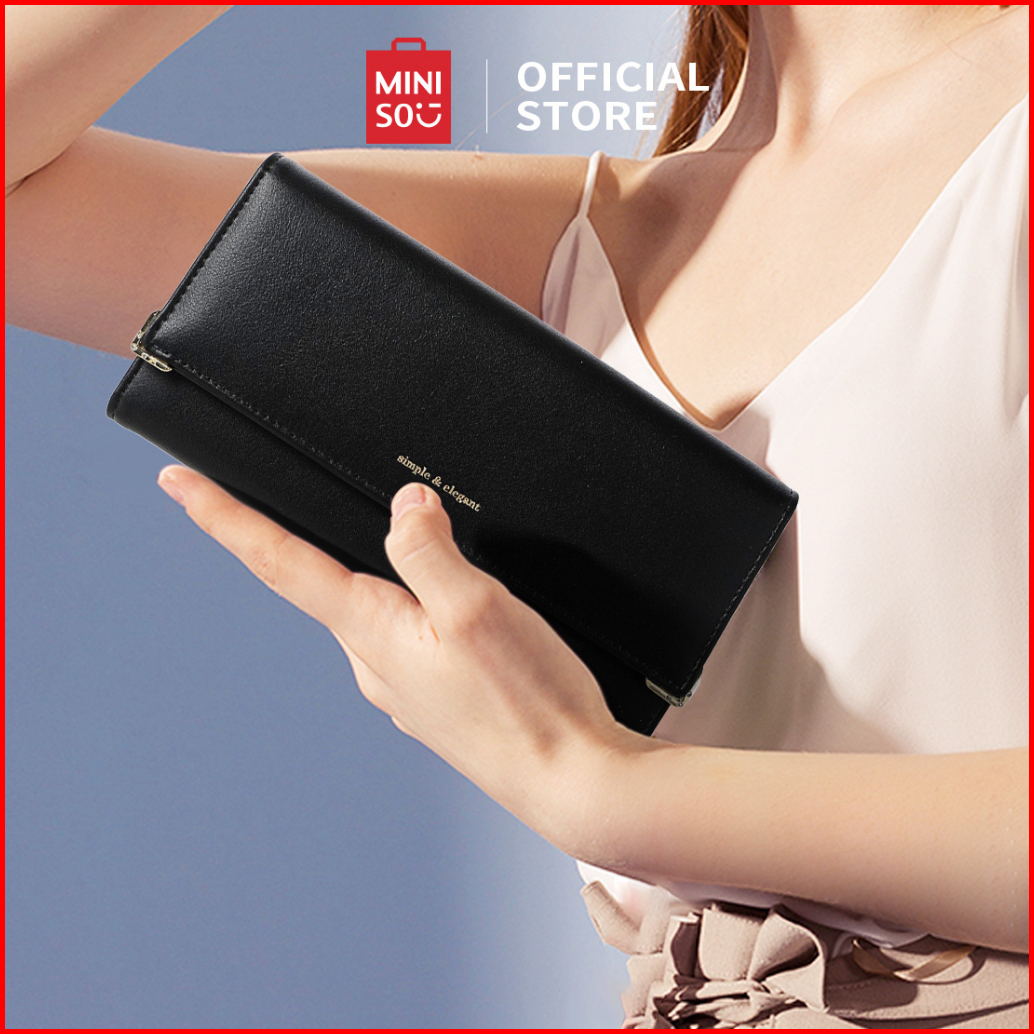 Miniso Dompet Wanita Women S Long Bifold Wallet Gesper Magnet Logam Tas Fashion Dompet Klasik Simple