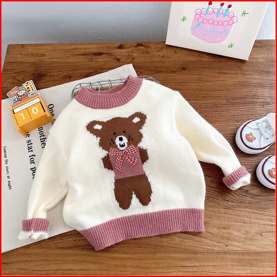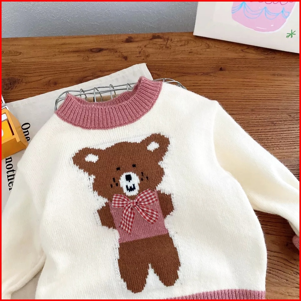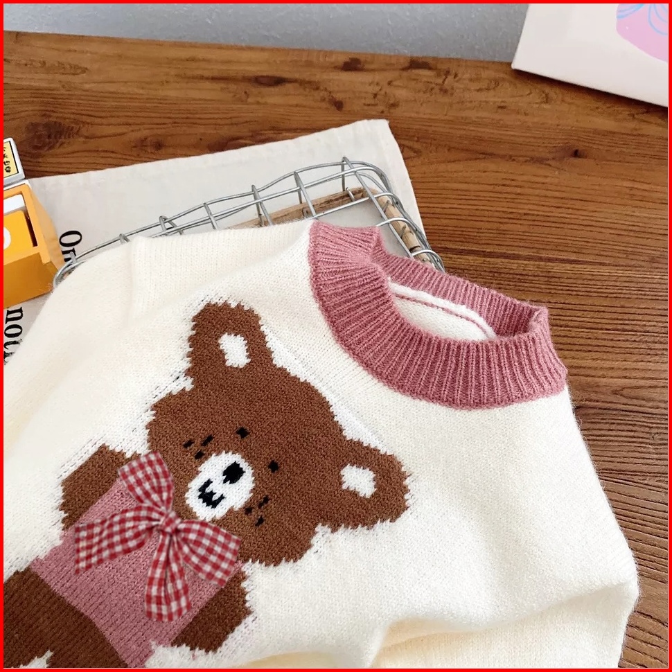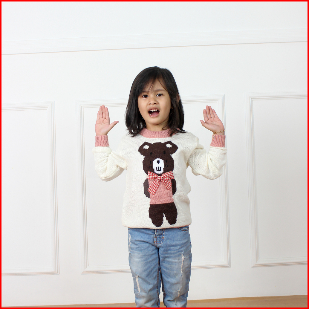 Zahra Atasan Baju Anak Perempuan Honey Bear Rajut Sweater Anak Premium Terlaris Umur 1-5 Tahun