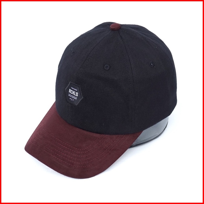 Rckls. Topi Pria Topi Polocaps Denim Strike Navy Maroon Topi Distro