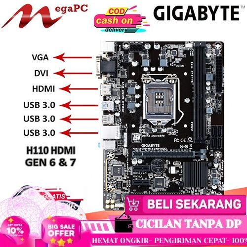 Tanpa DP PAKET MOTHERBOARD SOCKET LGA 1151 H110 DDR4 + CORE I5 6500 + FAN + RAM