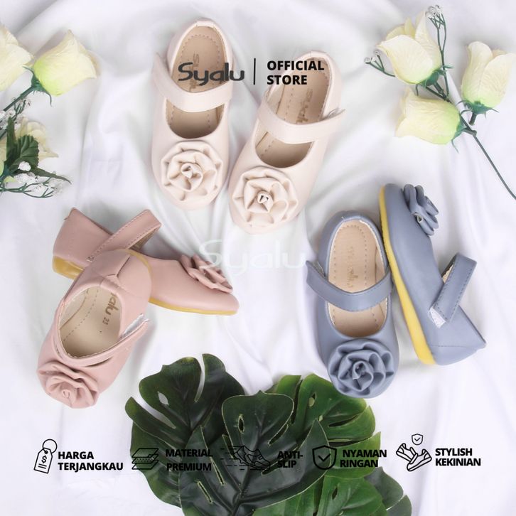 Sepatu Anak Perempuan Syalu Sepatu Slip On Anak Perempuan Bunga Bahan Sintetis RBB Sepatu Flat Anak Perempuan Original