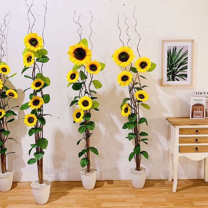 Bunga Hias Ruang Tamu - Bunga Matahari Artificial Tanaman Pohon Dekorasi Plastik