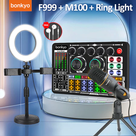 BONKYO f999 m100 soundcard set dengan peralatan streaming langsung pengurang kebisingan braket / soundcard komplit live