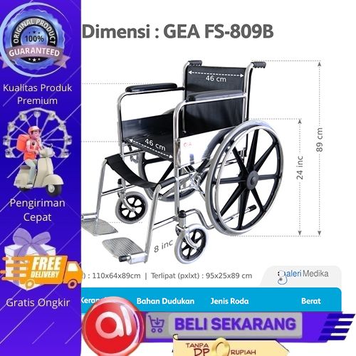 Tanpa DP KURSI RODA WHEELCHAIR VELG RACING GEA FS809B / FS-809B / FS 809 B - KURSI RODA RUMAH SAKIT