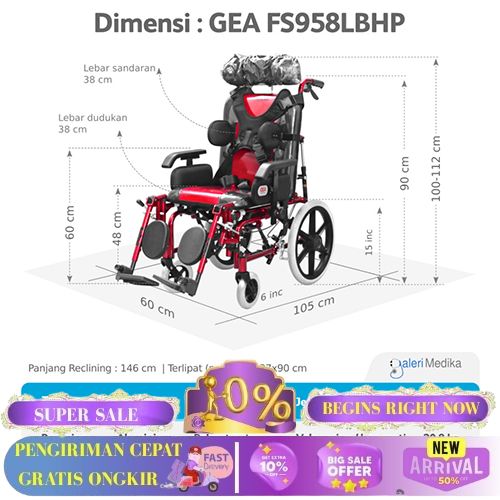 Tanpa DP KURSI RODA CEREBRAL PALSY / CEREBRAL PALSY WHEELCHAIR GEA FS 958 LBHP / FS958 / FS-958 - KURSI RODA CP