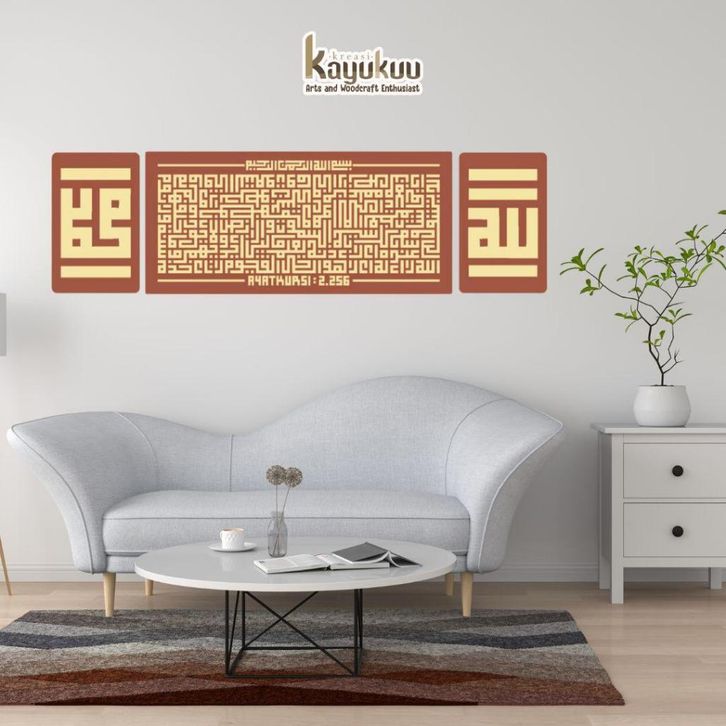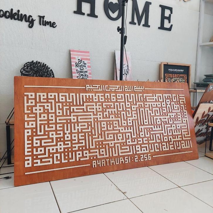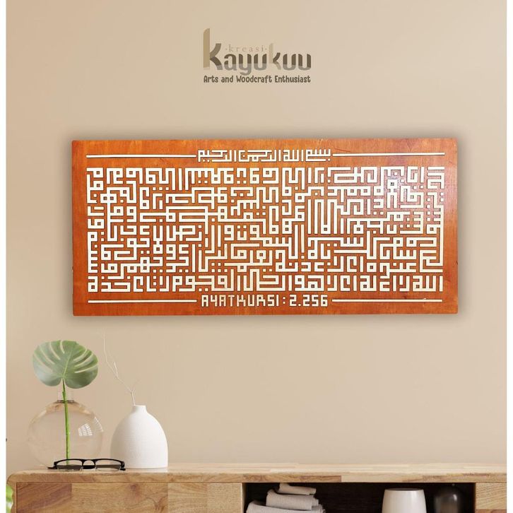 Kaligrafi Ayat Kursi Kufi Besar Timbul Hiasan Dinding Islami Kayu Plywood 120x55 cm