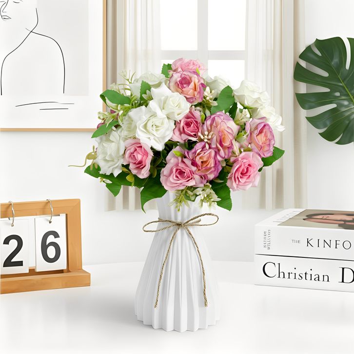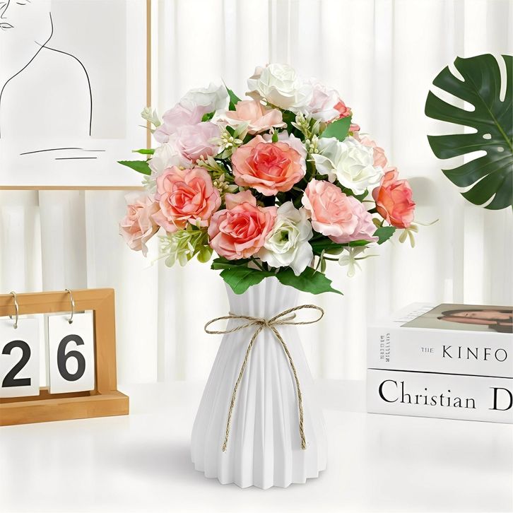 bunga hiasan ruang tamu Set Vas Bunga Plastic Aesthetic Bunga Hias Rumah Artificial Flowers bunga hiasan ruang tamu