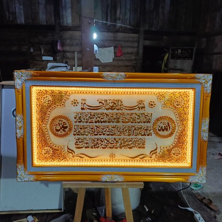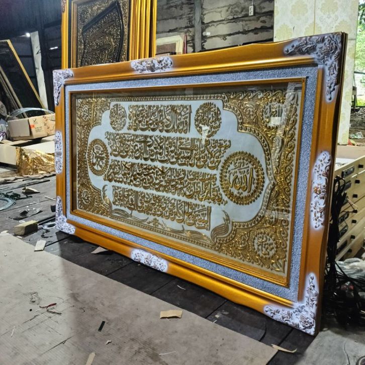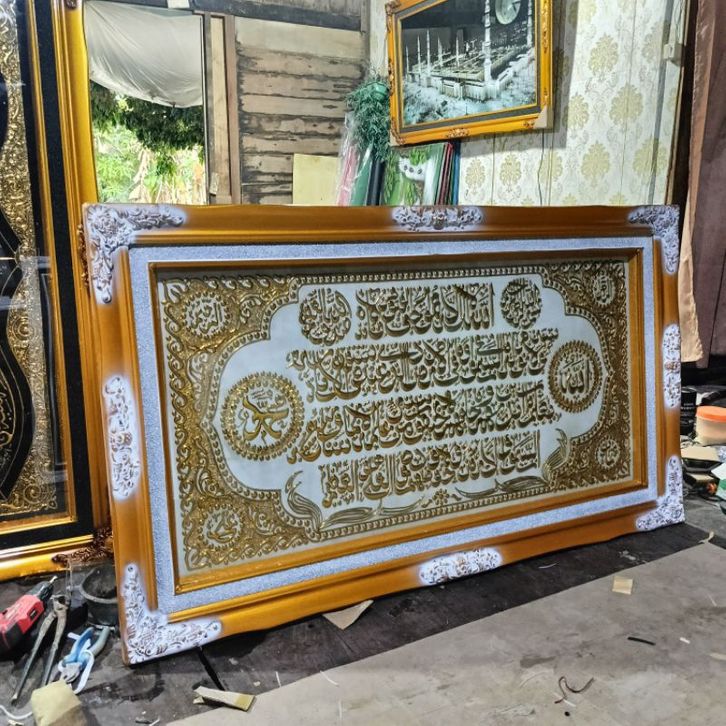 KALIGRAFI AYAT KURSI PRADA PUTIH JUMBO 85×145CM HIASAN DINDING RELIQI HIASAN DINDING MODERN KALIGRAFI YASIN KALIGRAFI