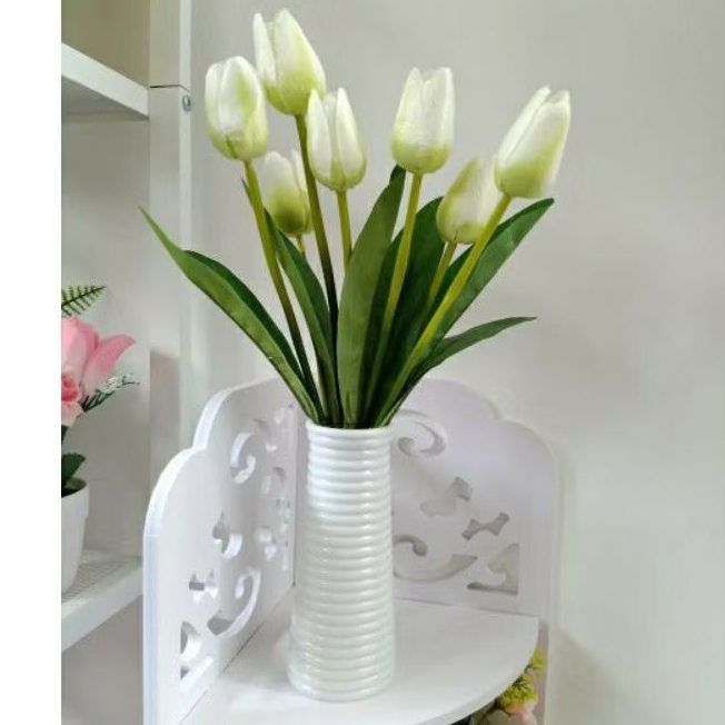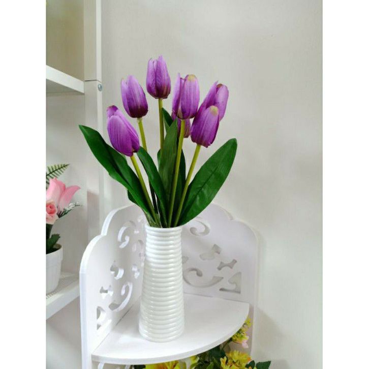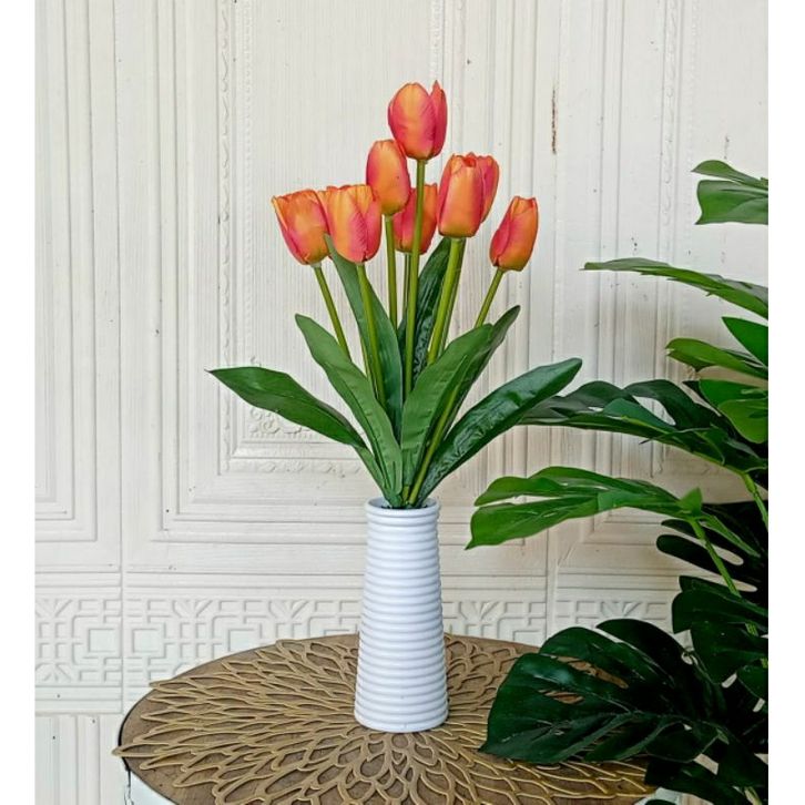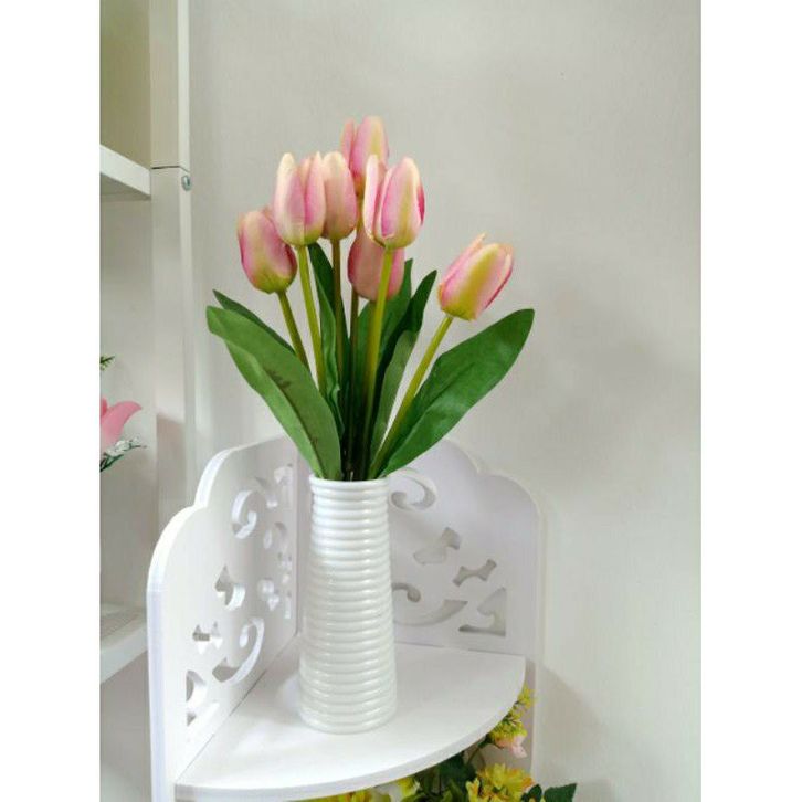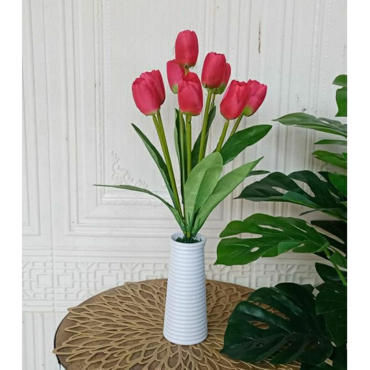 Bunga Hias Ruang Tamu (bunga + pot )tulip artifivial vas ulir//satu set bunga dan vas bunga tulip artificial