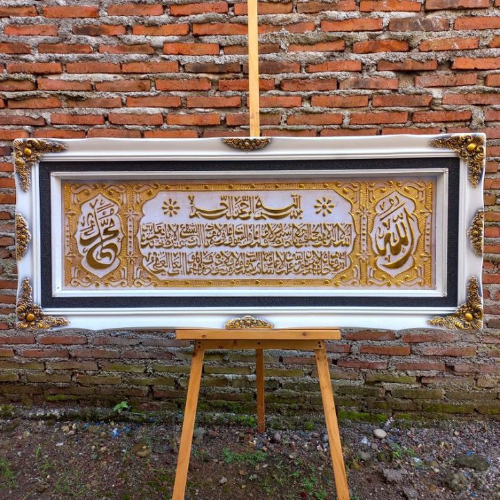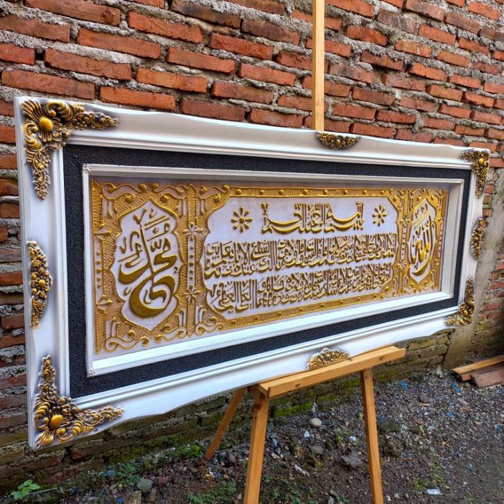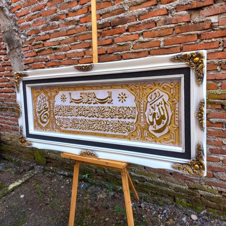 kaligrafi Ayat kursi putih gold mewah ukuran 145x60 PREMIUM QUALITY free peking kayu