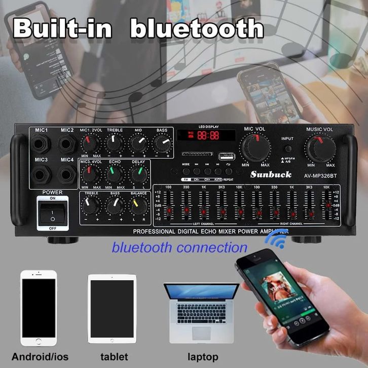 AV-326BT HIFI 2.0 amplifier subwoofer amplifier home professional amplifier karaoke bluetooth 5.2 high power karaoke
