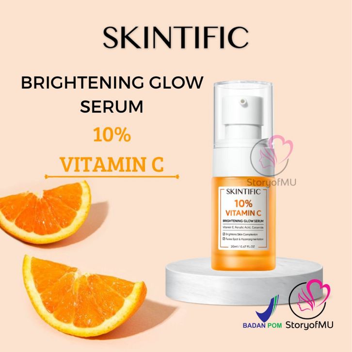 SKINTIFIC 10% Vitamin C Brightening Glow Serum 20ml - Serum Wajah Mencerahkan Kulit Wajah Tampak Glowing dan Bercahaya