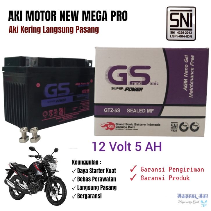 Aki Motor Honda New Mega Pro GS GTZ5 Aki Kering Langsung Pasang