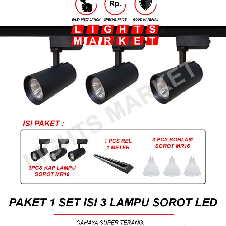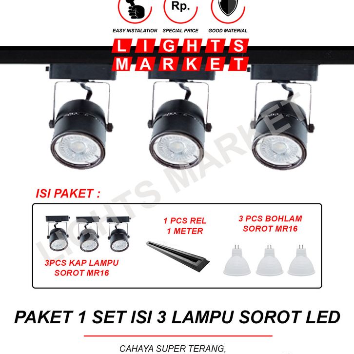 Lampu Sorot Rel 1 Set isi 3 Spotlight Track Light Rell