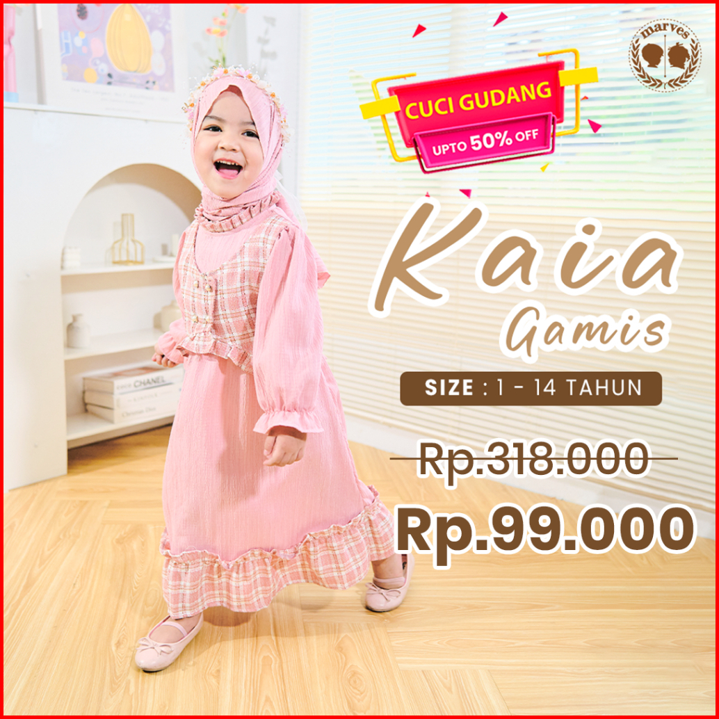 Cuci Gudang Marves Kaia Gamis Baju Muslim Anak Perempuan Free Kerudung Usia 2 Hingga 14 Tahun