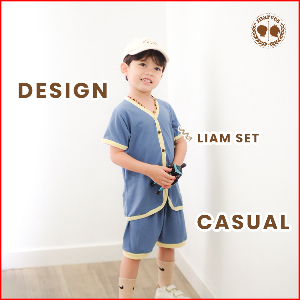 Marves Setelan Kaos Celana Baju Anak Laki Laki Bahan Katun Usia 1 Hingga 8 Tahun Model Liam