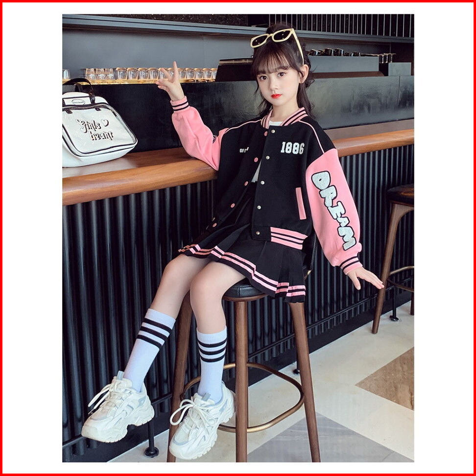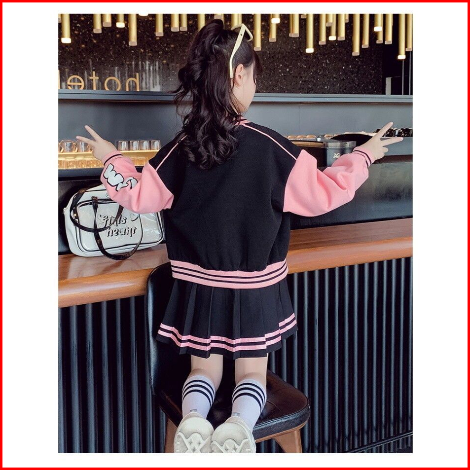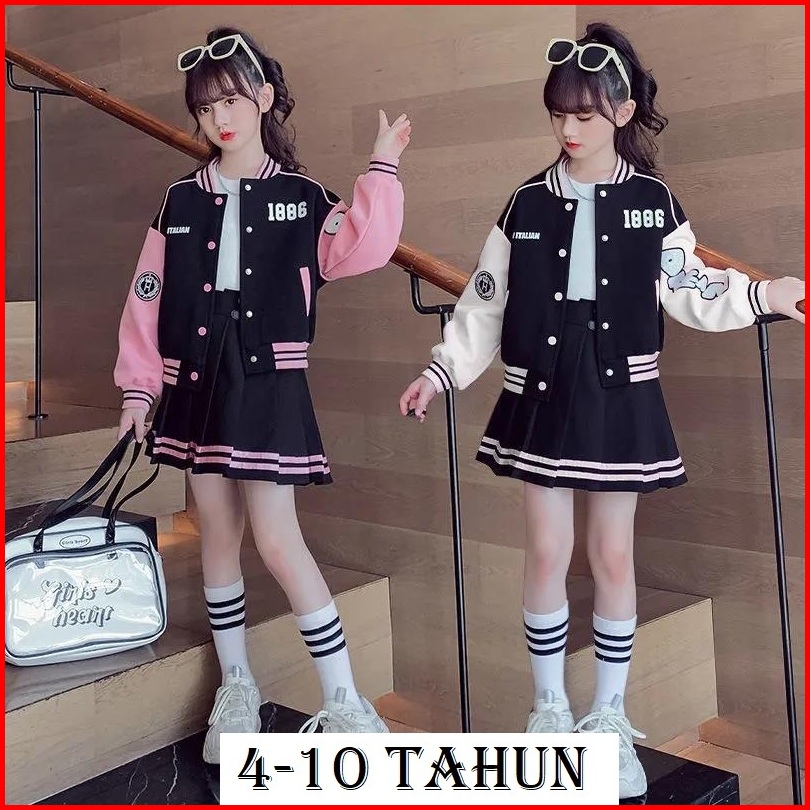 Meandboss Ssp26- Ssetelan Set Anak Besar Teenager Remaja Perempuan High School Style Bomber Jacket Mini Skirt
