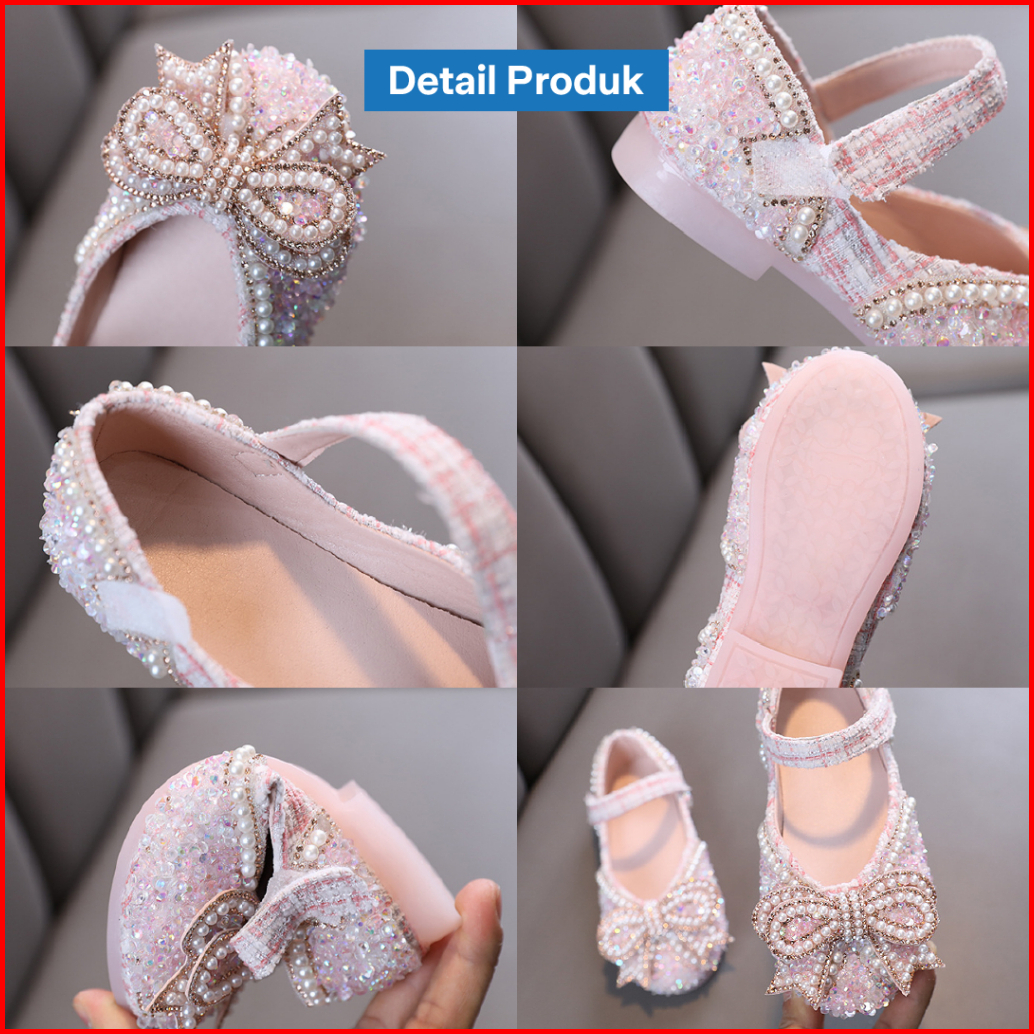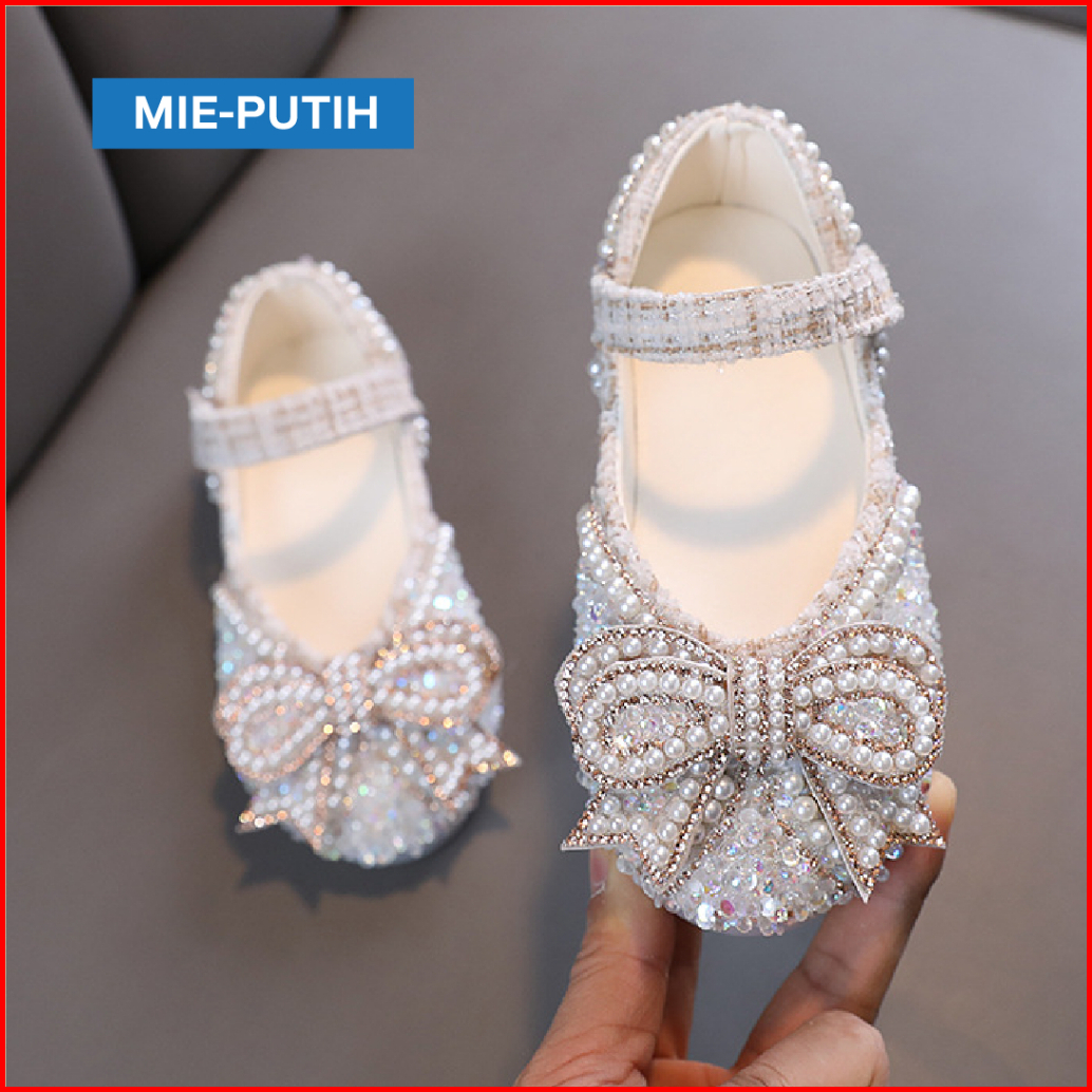 Lapago Free Box Sepatu Flat Anak Perempuan Mutiara Elegant Pesta Usia 1 - 5 Tahun Type Mie