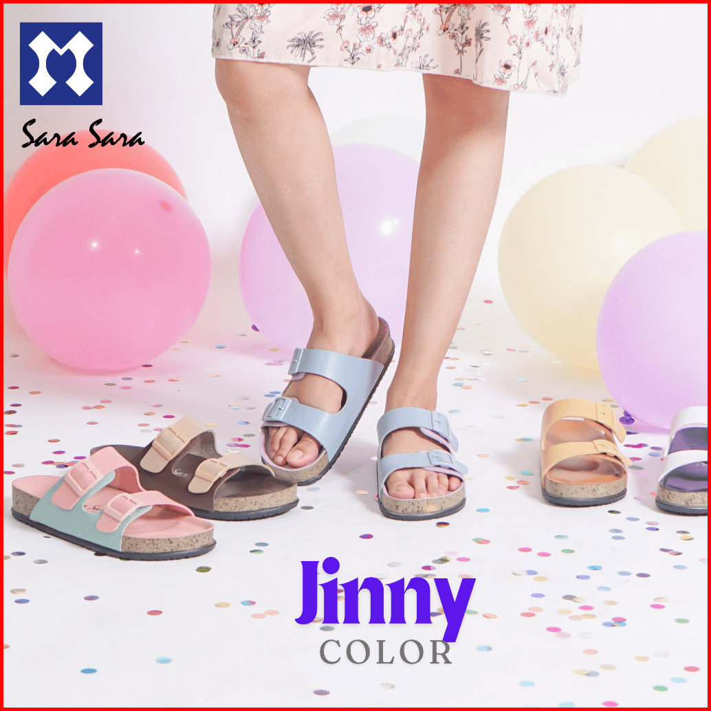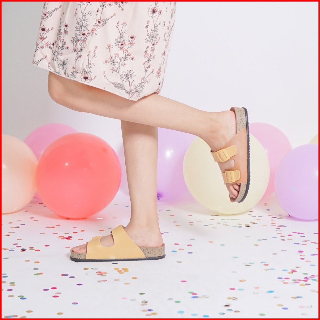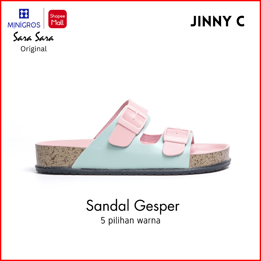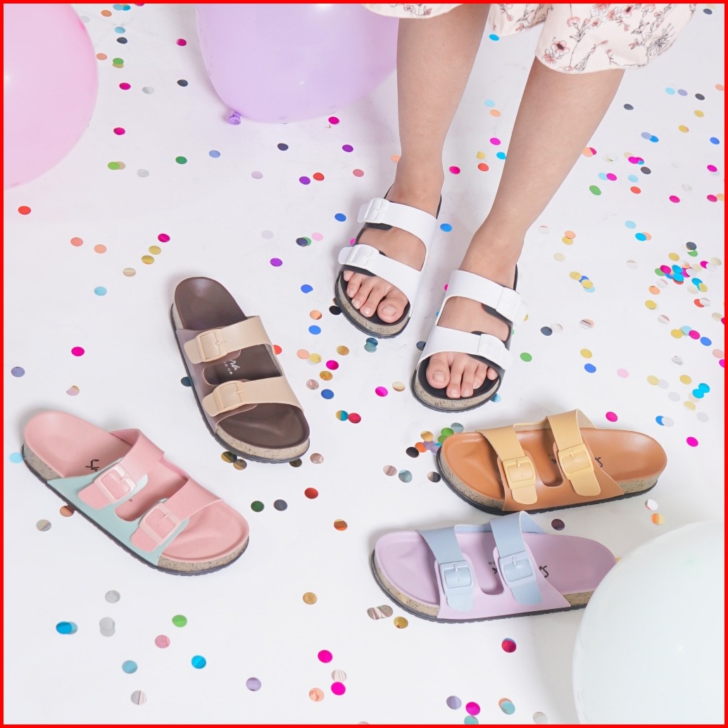 Sara Sara Jinny Color Sandal Flat Wanita Model Gesper Birken